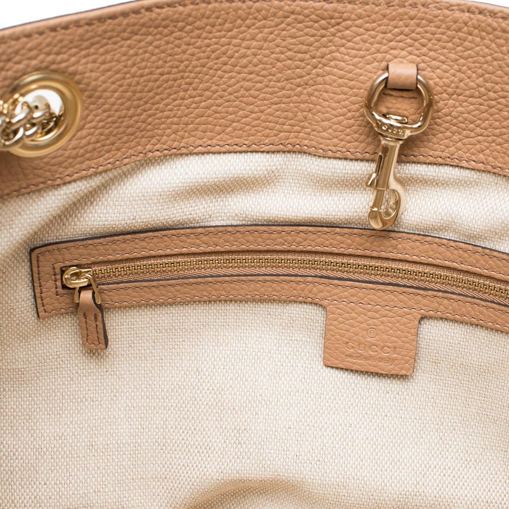 Gucci Camelia Camel Pebbled Leather Soho Shoulder Hand Bag Tassel