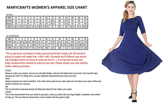 EXTENSIVE RANGE SIZE CHART: Please look at the size chart in the description to choose your size correctly. MARYCRAFTS accommodates extensive range size chart from size 00 to size 22, which is identical to Amazon women's size chart and offers better fitting than letter size chart.