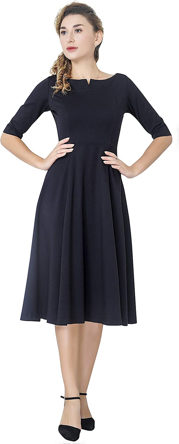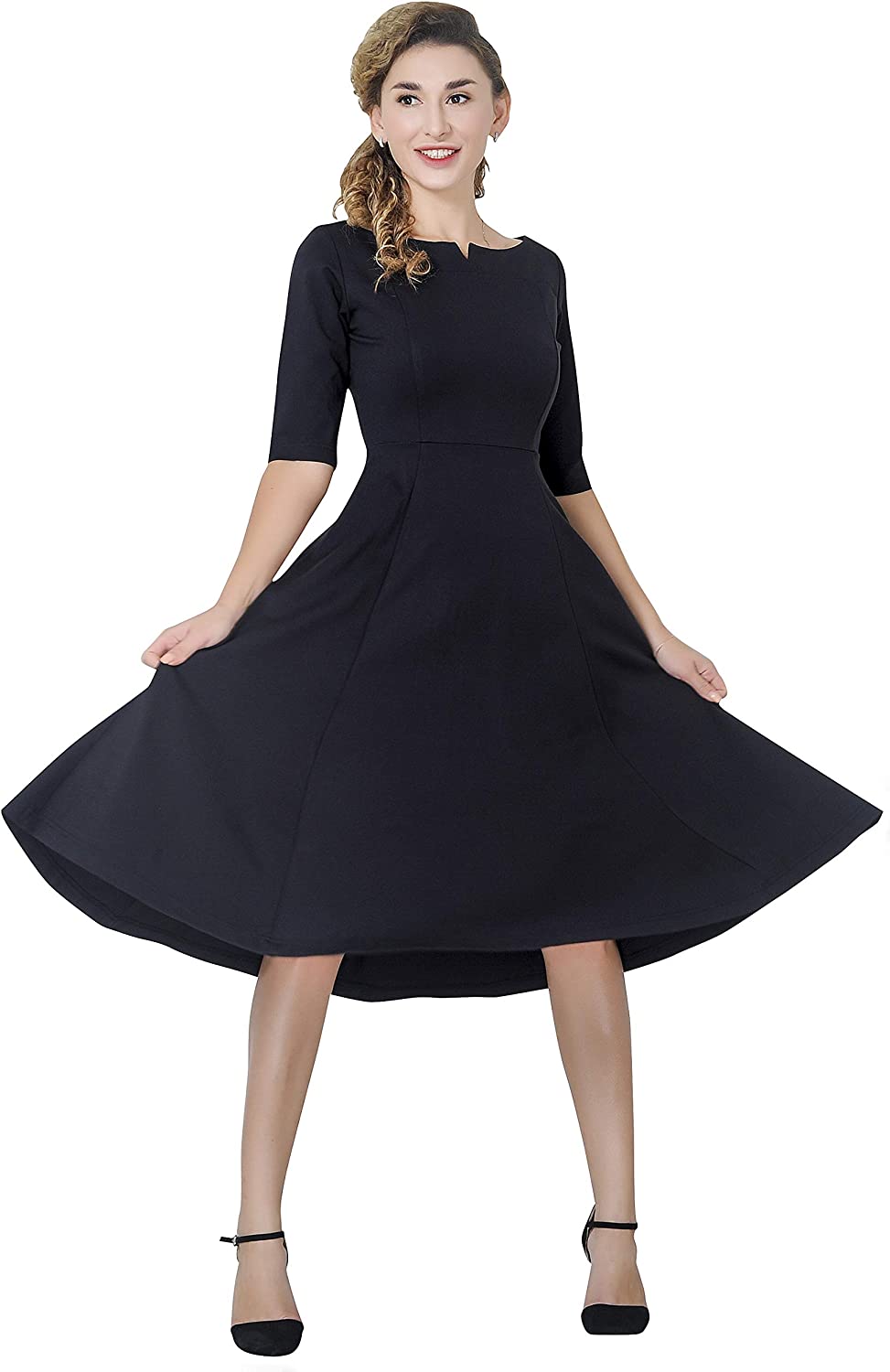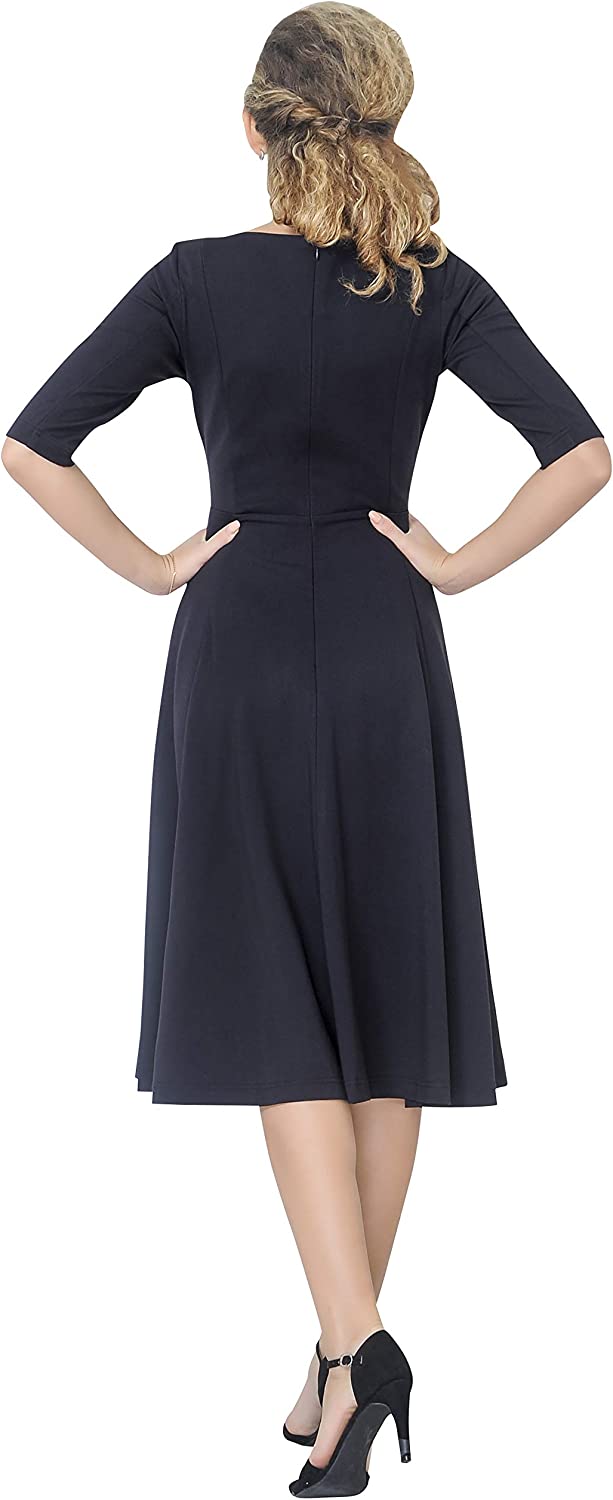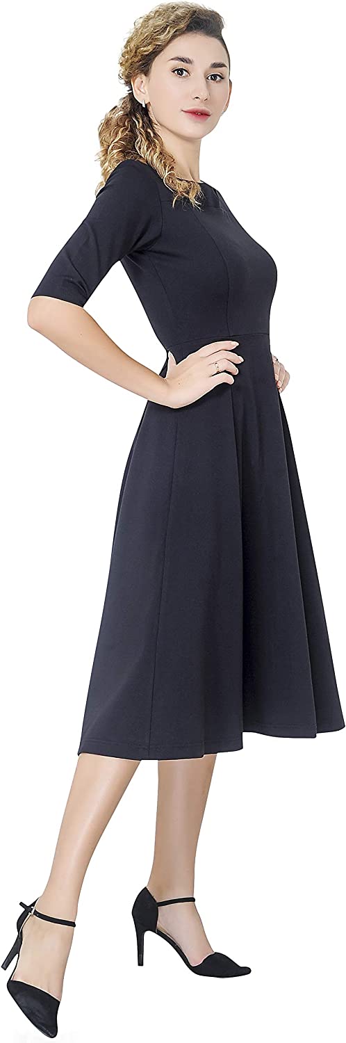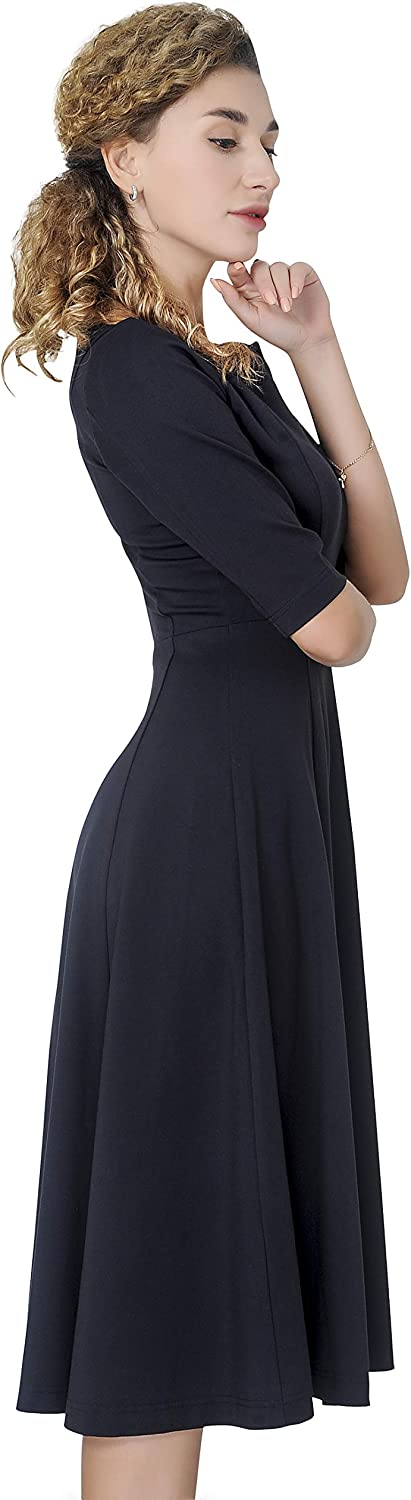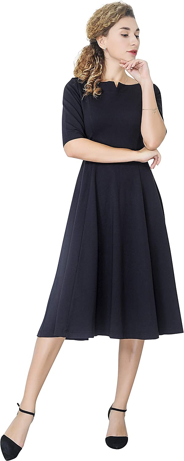 LUXURIOUS MATERIALS: Marycrafts Slot Neck Fit-and-Flare Midi Dress is made of high quality stretchy ponte de roma fabric. The fabric is incredibly soft, stretchy, comfortable and durable to hug your body.
