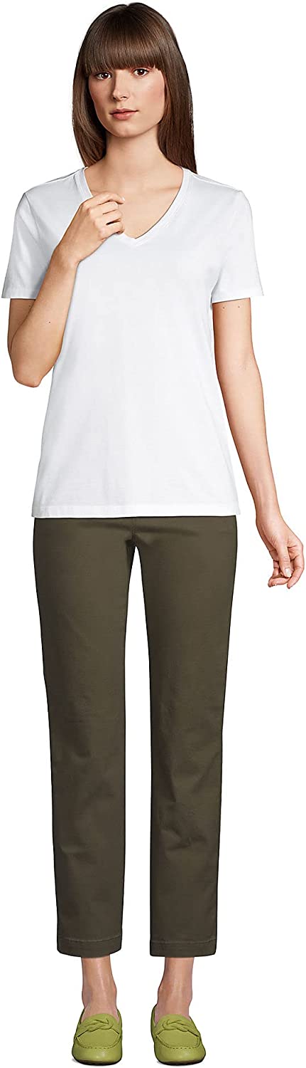Relaxed Fit: Generously cut this ladies tee hangs loose on top maintaining a slim shape. Soft cotton holds its form after washing. Classic V neck style. Mid-hip length for extra coverage in back.