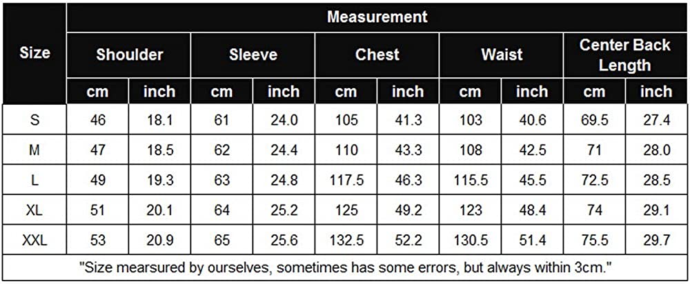 - NOTE: To ensure your best fit size,please check the size information carefully to make sure your measurement before ordering