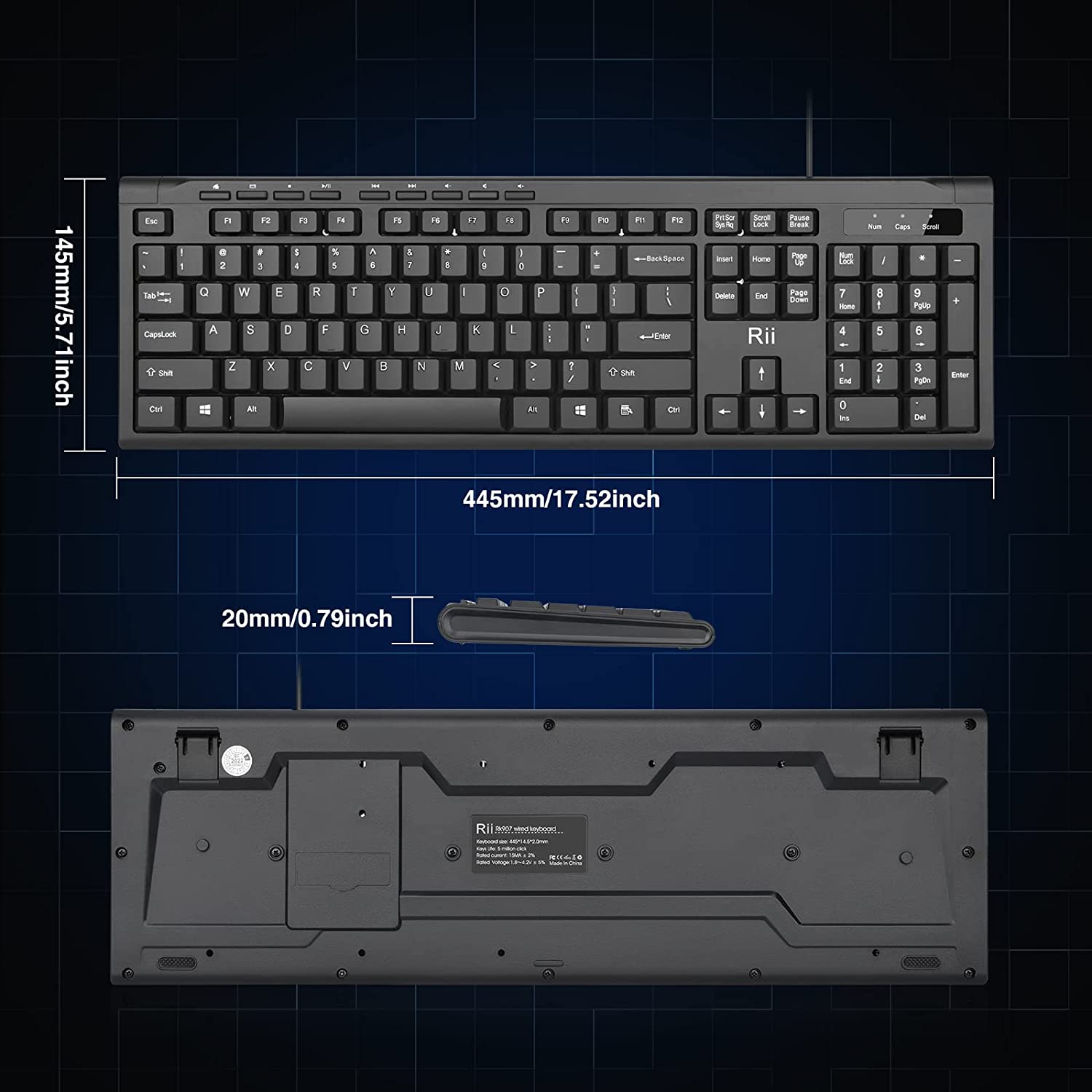 Cheap USB Keyboard,corded keyboard with full numeric keypad,Rii RK907 usb wired computer keyboard