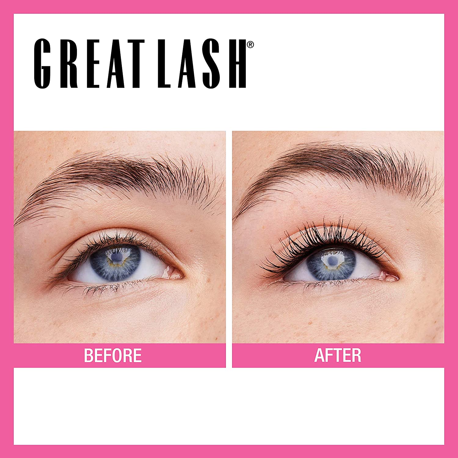 Maybelline Great Lash Washable Mascara Makeup, Volumizing Lash-Doubling Formula That Conditions As It Thickens, Very Black, 2 Count