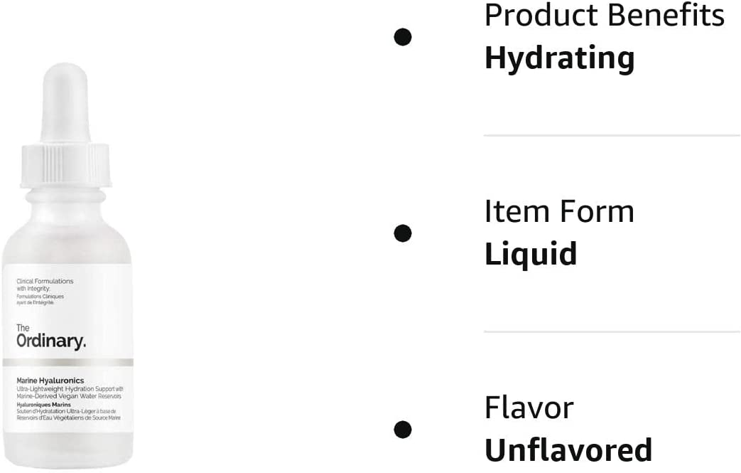 Marine Hyaluronics Ultra-Lightweight Hydration Support with Marine-Derived Vegan Water Reservoirs Technology Marine Hyaluronics brings together lightweight marine-derived water reservoirs that attract and hold water like hyaluronic acid (HA) but are lighter than HA in texture and feel. The formula contains exopolysaccharides from skin-friendly marine bacteria, Hawaiian red algae, Glycoproteins from Antarctic marine sources, micro-filtered blue-green algae and several health-supporting amino acids. All marine derivatives in Marine Hyaluronics are sourced sustainably. The total concentration of active ingredients in this formula is 23%. This formula is exceptionally light in texture. If you prefer a more viscous formula, please explore Hyaluronic Acid 2% + B5. Directions Apply a few drops to face AM and PM before creams. If irritation occurs, cease use and consult a physician. Use only as directed on unbroken skin. Patch testing prior to use is advised. Keep out of reach of children. Ingredients Aqua (Water), Glycerin, Algae Extract, Pseudoalteromonas Exopolysaccharides, Pseudoalteromonas Ferment Extract, Ahnfeltia Concinna Extract, Arginine, Glycine, Alanine, Serine, Valine, Isoleucine, Proline, Threonine, Histidine, Phenylalanine, Aspartic Acid, Pca, Sodium Pca, Sodium Lactate, Salicylic Acid, Citric Acid, Propanediol, Dimethyl Isosorbide, Ethoxydiglycol, Polysorbate 20, Potassium Sorbate, Sodium Salicylate, Sodium Benzoate, Hexylene Glycol, 1,2-Hexanediol, Phenoxyethanol, Caprylyl Glycol