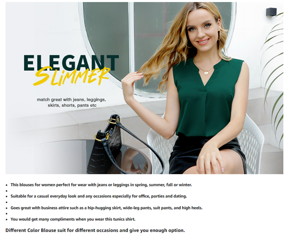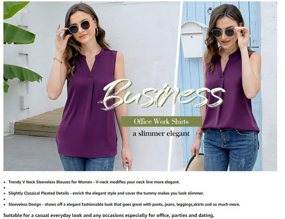 This sleeveless blouse tank shows off a slimmer elegant fashionable look that goes great with business attire such as a hip-hugging skirt, wide-leg pants, suit pants, and high heels.