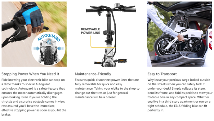 Turn on the power and twist the throttle to engage the e-bike’s power assist mode. This mode makes the EB-5 a great commuter bike that’s sure to add an extra boost to expedite your daily commutes, especially for those uphill struggles. This way, you can get your heart pumping as you pedal to work and then use the throttle to cruise your way back home. Plus, with a rechargeable li-ion battery, traverse up to 15.5 miles of blissful commutes and adventures on power alone then pedal for even more distance. Use one after the other to extend your travel distance or even use both at intervals for a new way to exercise. Ride the EB-5 electric scooter bike any way you want!