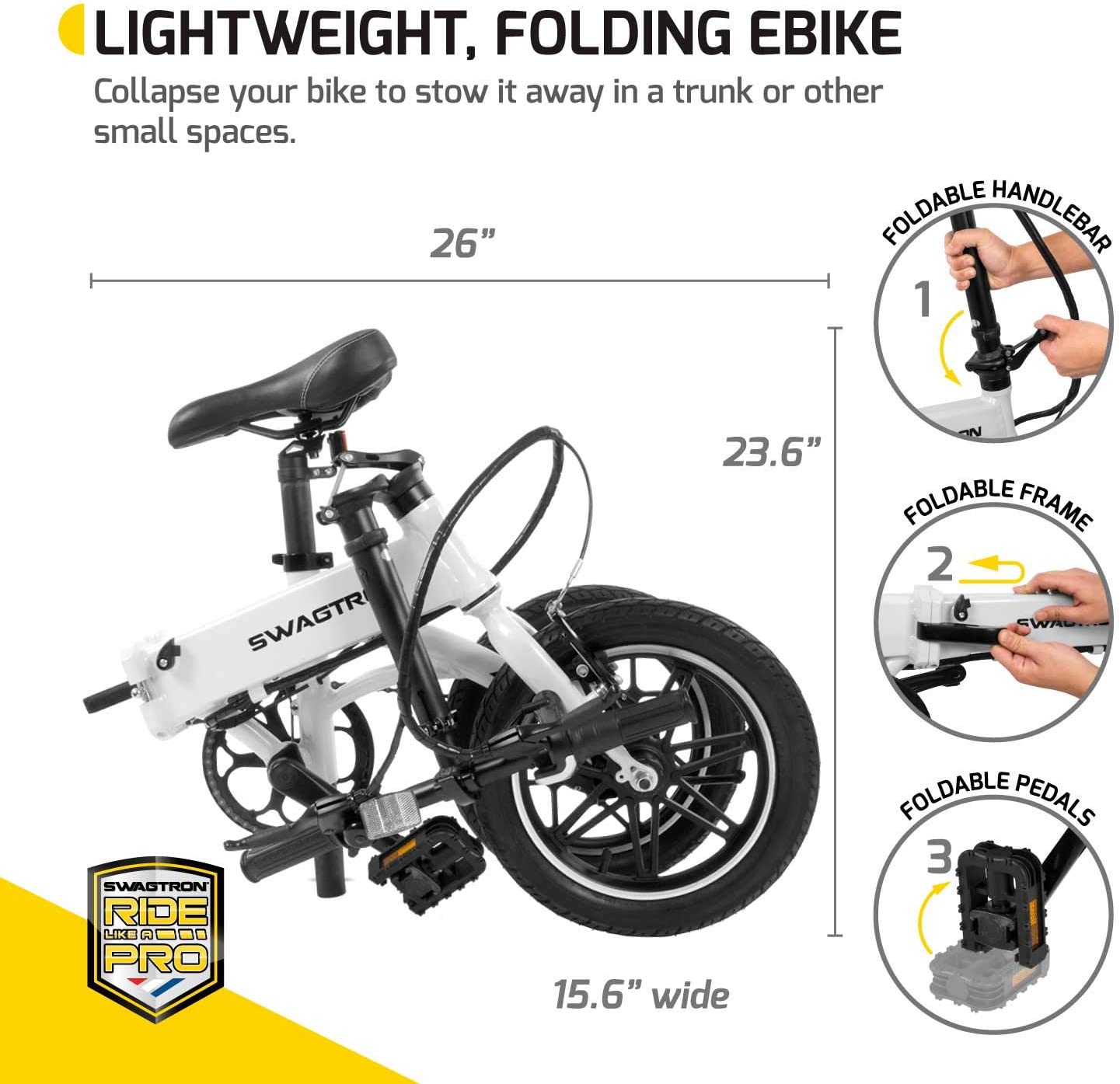 Model Name‎SWAGTRON Swagcycle EB5 Lightweight & Aluminum Folding Ebike with Pedals