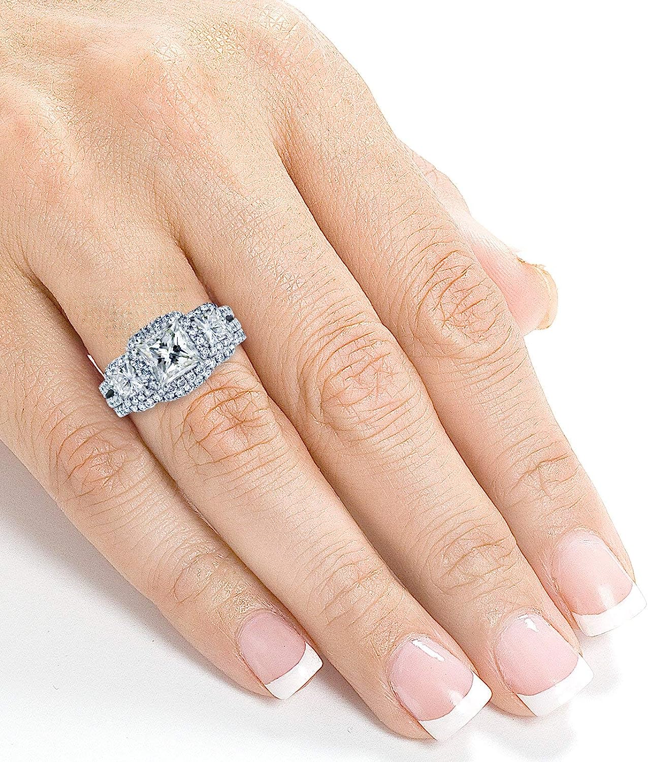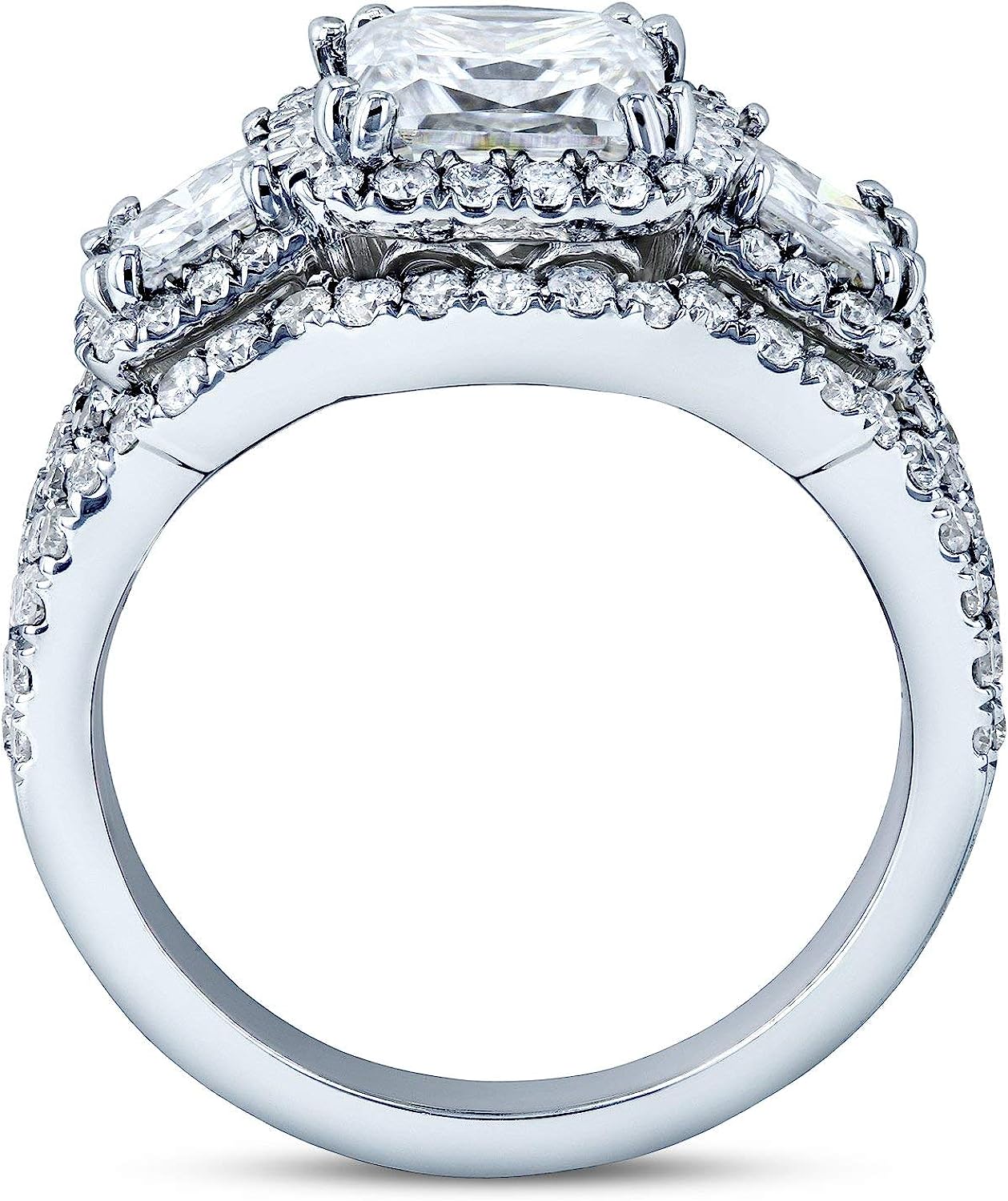 Kobelli 2 4/5-CTW Princess Moissanite Halo 3-Stone Engagement Ring 14k White Gold
