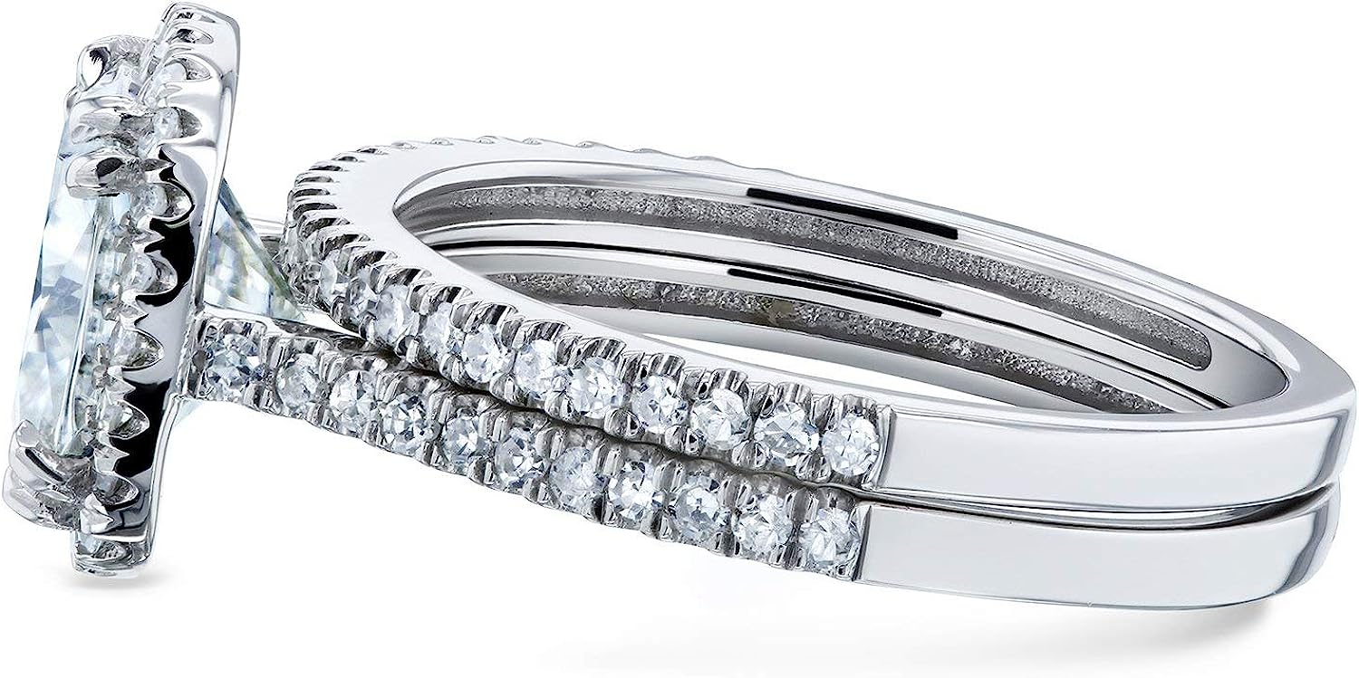 Kobelli Cushion Brilliant Moissanite Halo Bridal Wedding Rings Set 2 3/8 CTW 14k White Gold