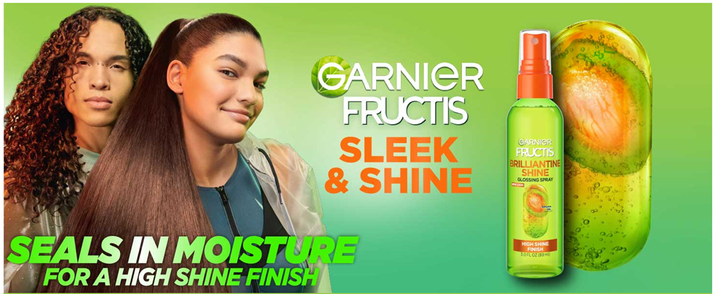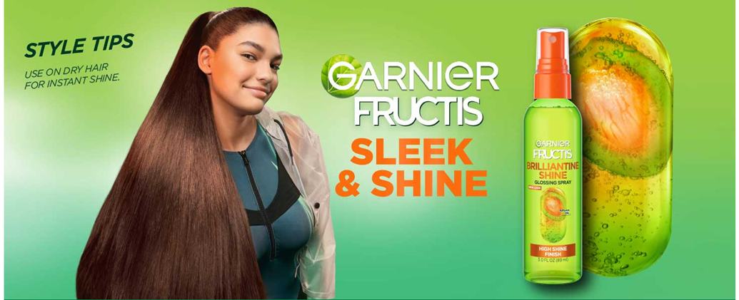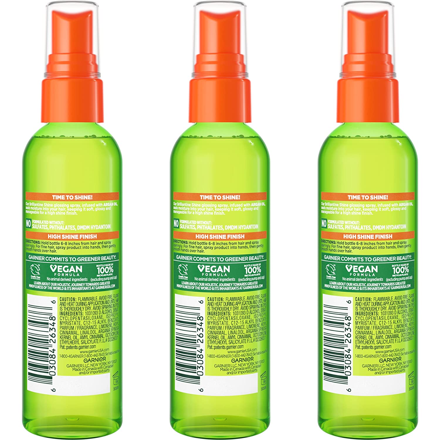 Turn on the brilliantly styled hair with Garner Fructose Style Brilliantine Shine Glossing Spray! HOW DOES IT WORK? Paraben-free glossing spray with Argon Oil from Morocco seals shine and moisture into hair, keeping it soft, glossy, and manageable. GET INSPIRED! Create a "Shining Sleek" look: Lightly spray over flat-ironed locks for brilliant, glossy shine.