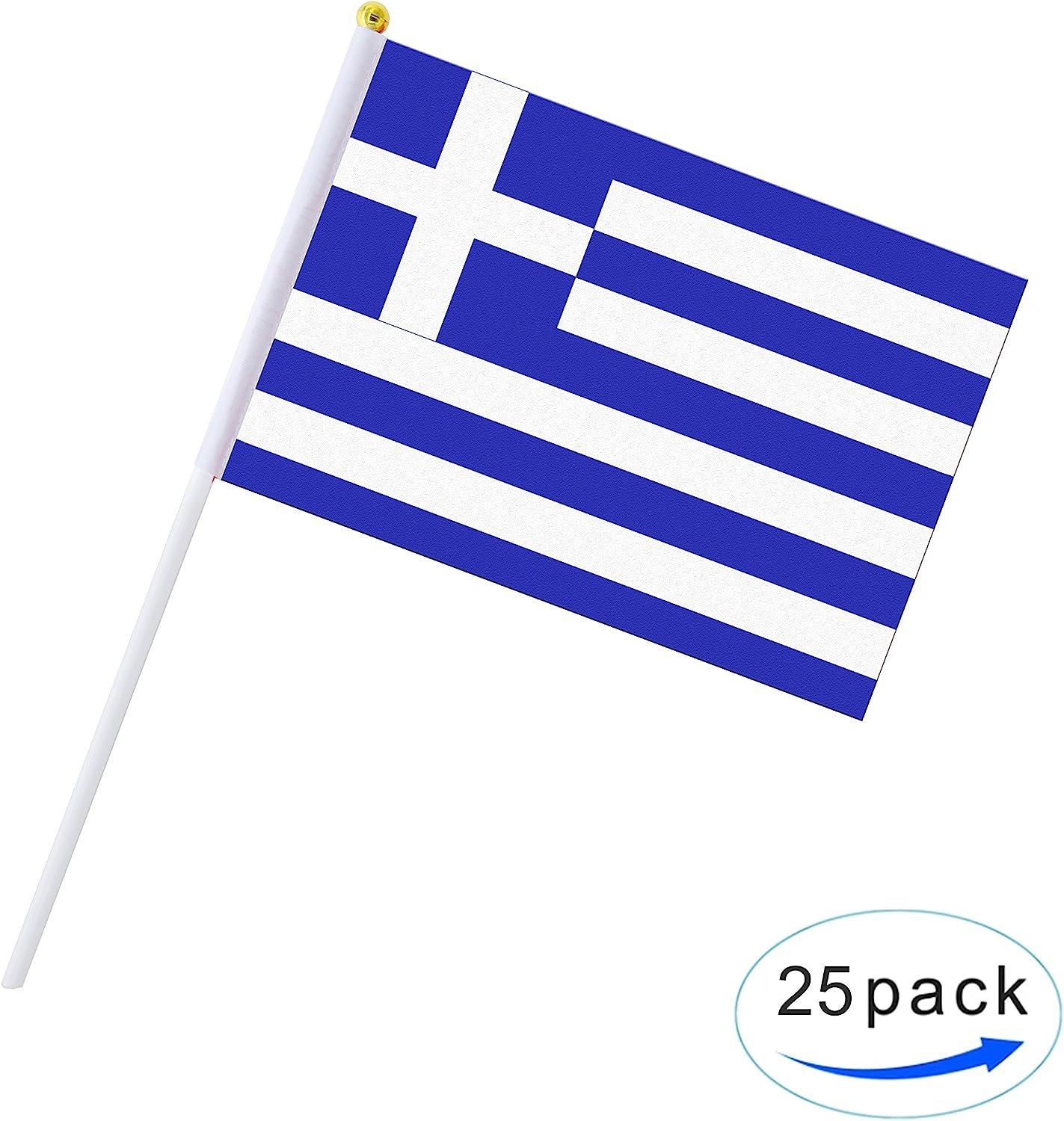 25 Pack Hand Held Greece Flag Greek Flag Stick Flag Round Top National Country Flags,Party Decorations Supplies For Parades,World Cup,Sports Events,International Festival