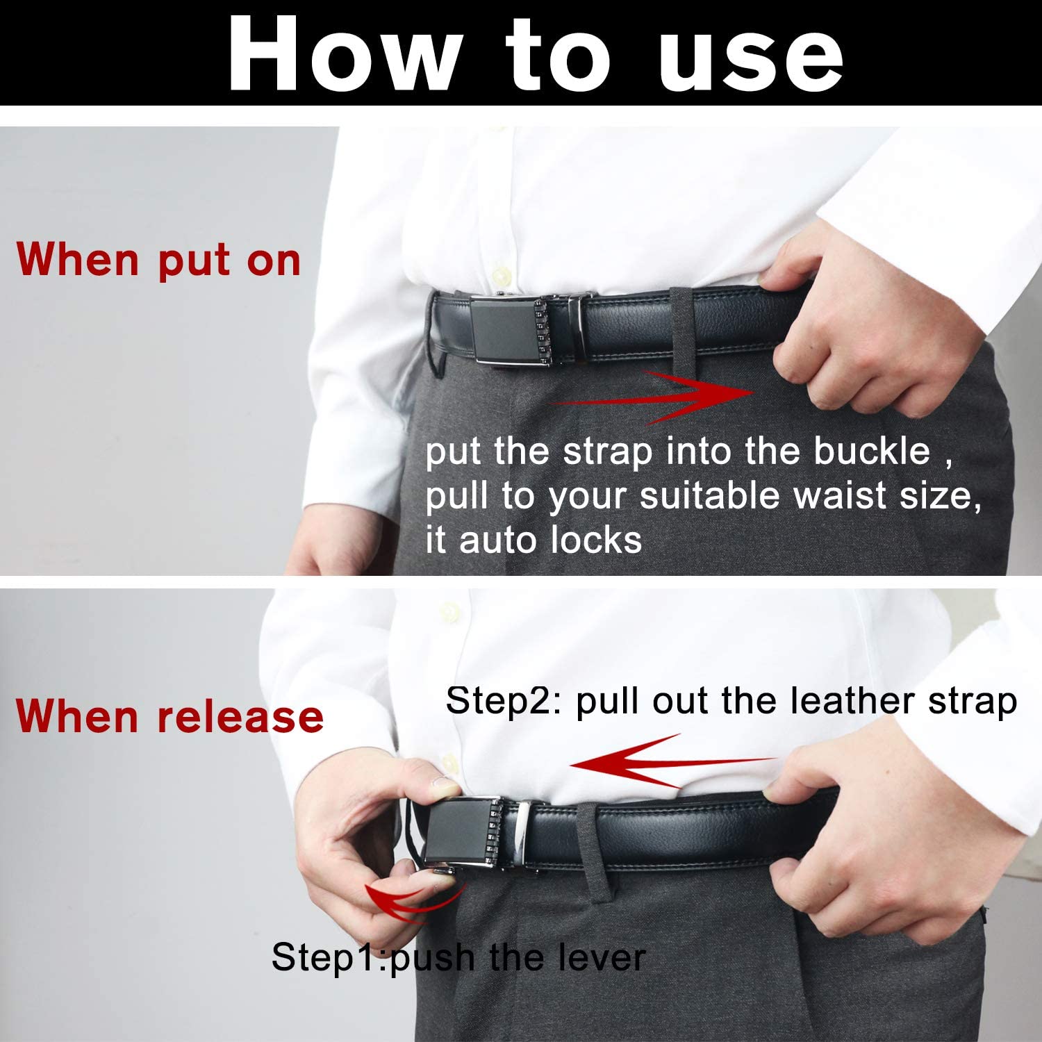 - The black alloy of the ratchet belt for men looks very upscale with high gloss, let the whole buckle is full of the fine quality and valued sense.