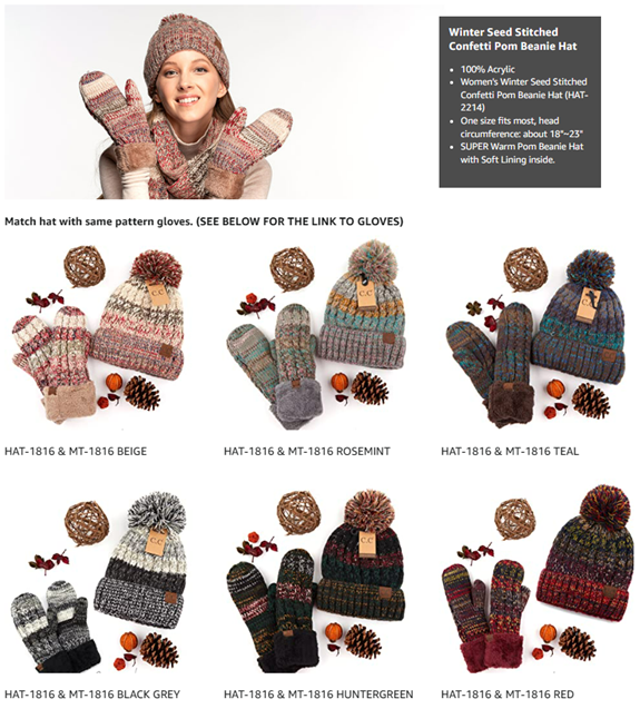C.C Exclusives Women's Winter Seed Stitched Confetti Pom Beanie Hat (HAT-1816)(HAT-2214)(HAT-2085)(HAT-3841)