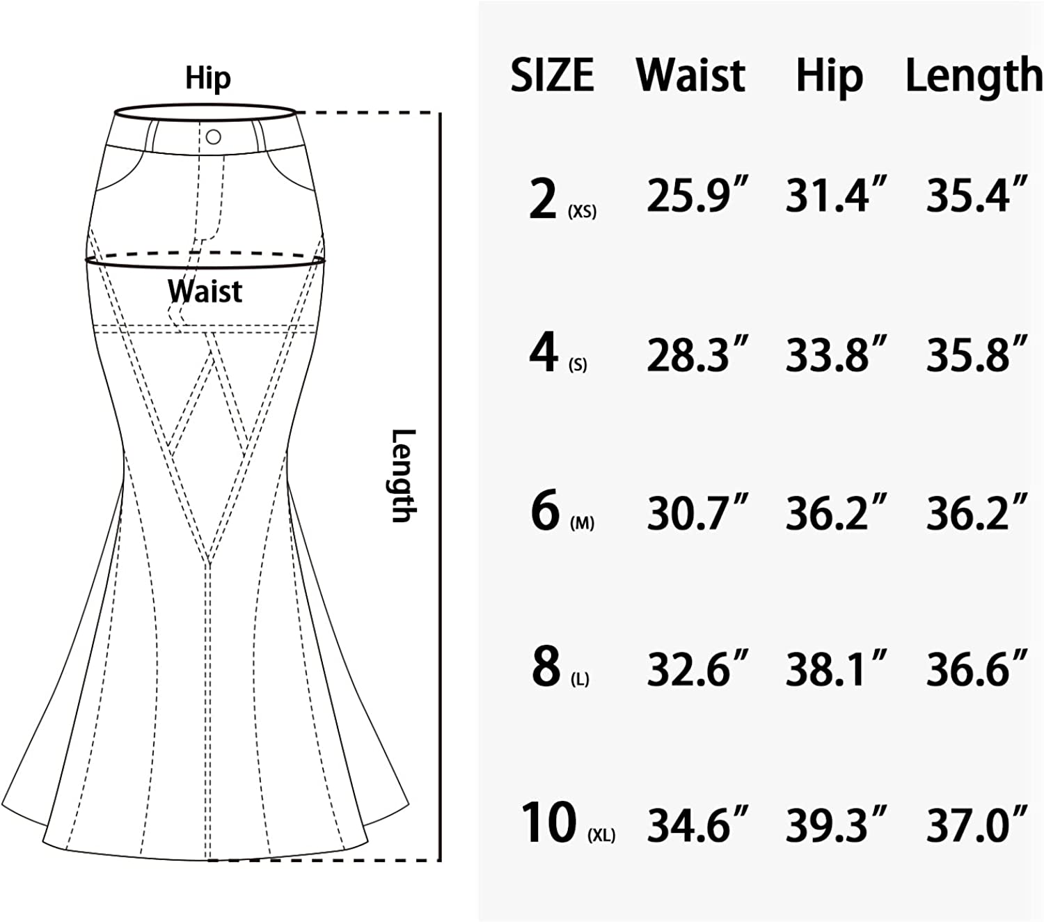 LISUEYNE Women's Casual Stretch Waist Washed Denim Ruffle Fishtail Skirts Long Jean Skirt
