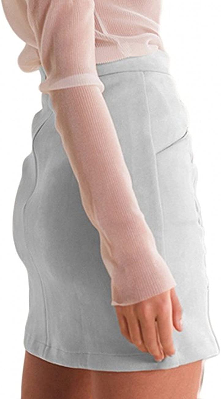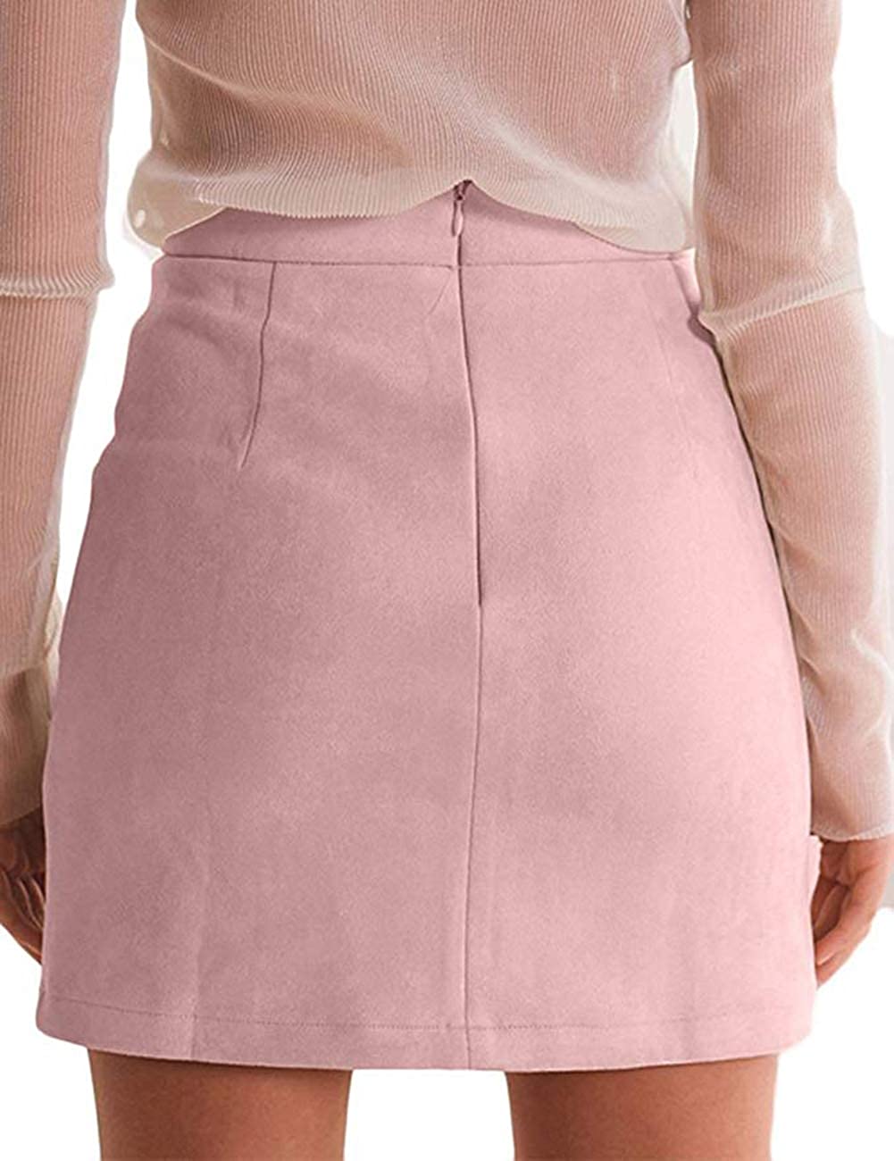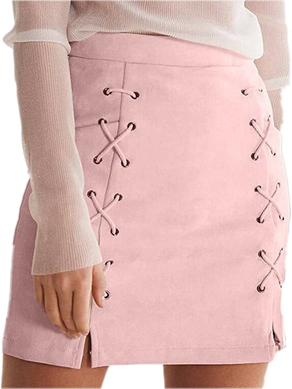katiewens Women's Classic High Waist Lace Up Bodycon Faux Suede A Line Mini Pencil Skirt