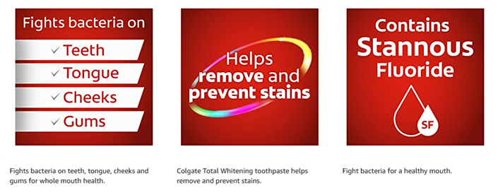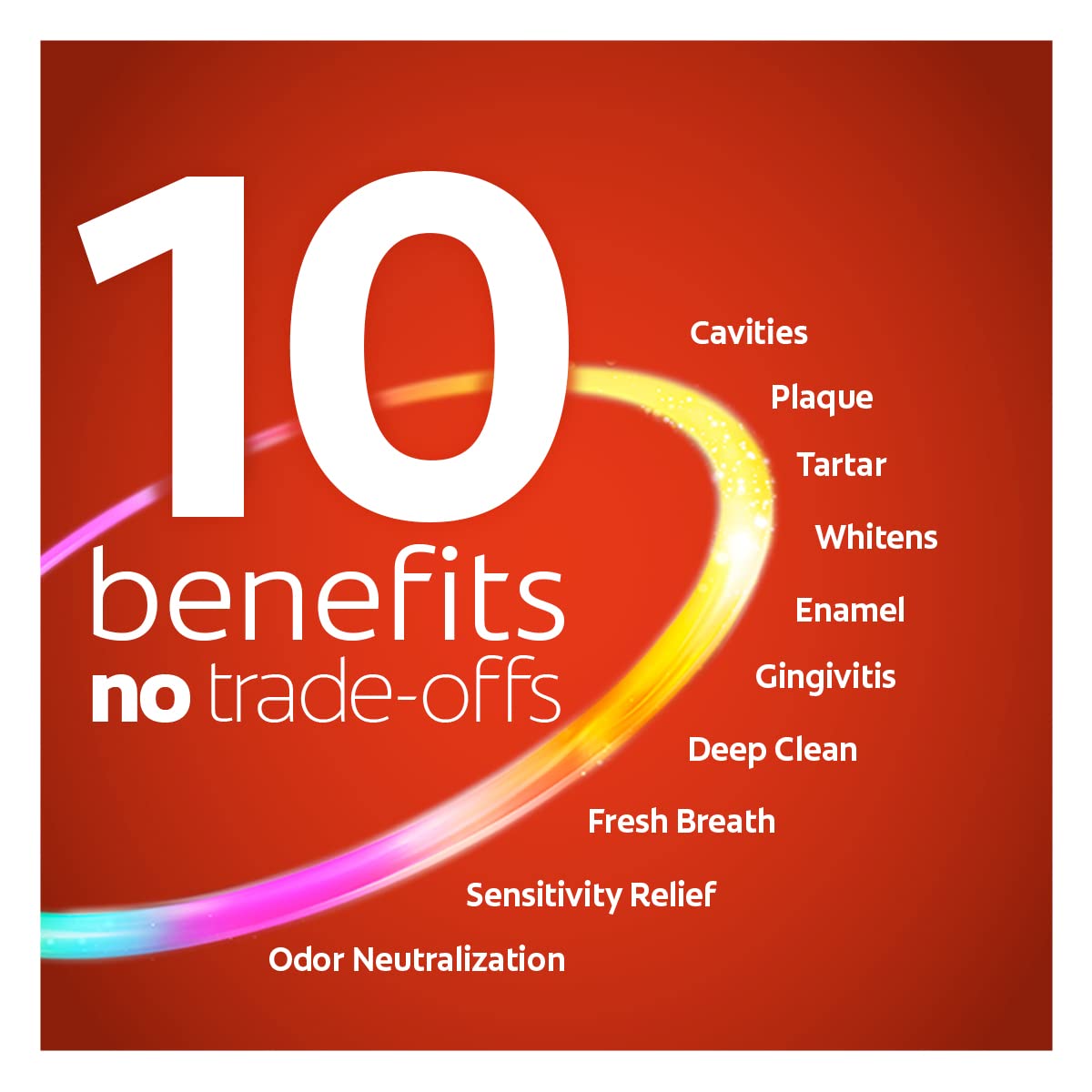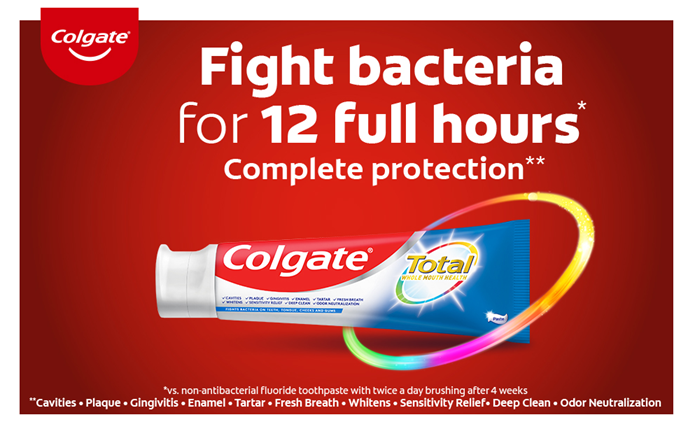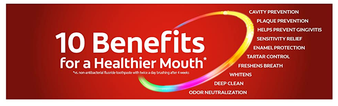 Get 10 benefits and no trade-offs with Colgate Total Teeth Whitening Toothpaste. This multi-benefit toothpaste provides 42%* more sensitivity relief than a regular fluoride toothpaste while removing and preventing surface stains. This mint toothpaste leaves your mouth feeling fresh after every brush. Remove surface stains by brushing twice daily with this tooth whitening toothpaste. Plus, this sugar-free and gluten-free whitening toothpaste not only helps remove stains for whiter teeth, but also keeps your whole mouth healthy by fighting bacteria on teeth, tongue, cheeks, and gums for 12 hours.** Easily stock multiple bathrooms with this convenient double toothpaste pack. For good oral hygiene, brush your teeth twice a day for two minutes. You can smile confidently when you use Colgate Total tooth whitening toothpaste. Leave your mouth feeling clean and fresh and remove surface stains with Colgate Total Toothpaste. *versus a regular fluoride toothpaste after 8 weeks of use **with 4 weeks of continuous use