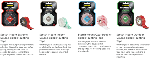 Scotch Indoor Double-Sided Mounting Tape is ideal for painted surfaces and allows you to quickly and easily beautify and organize your space. Whether you’re creating a gallery wall or affixing the family chore chart, this permanent double-sided foam tape holds up to 15 pounds and delivers a strong bond every time because of its 3M industrial strength adhesive. Your work is up and ready to admire in 30 seconds flat – no nails or hammer needed. Never let how you’re going to hang it get in the way of your creativity with the powerful adhesion of Scotch Indoor Double- Sided Mounting Tape.