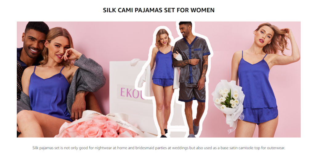 Ekouaer Satin Sleepwear for Women Silk Soft Lingerie Pajamas Cami Shorts Set Grey