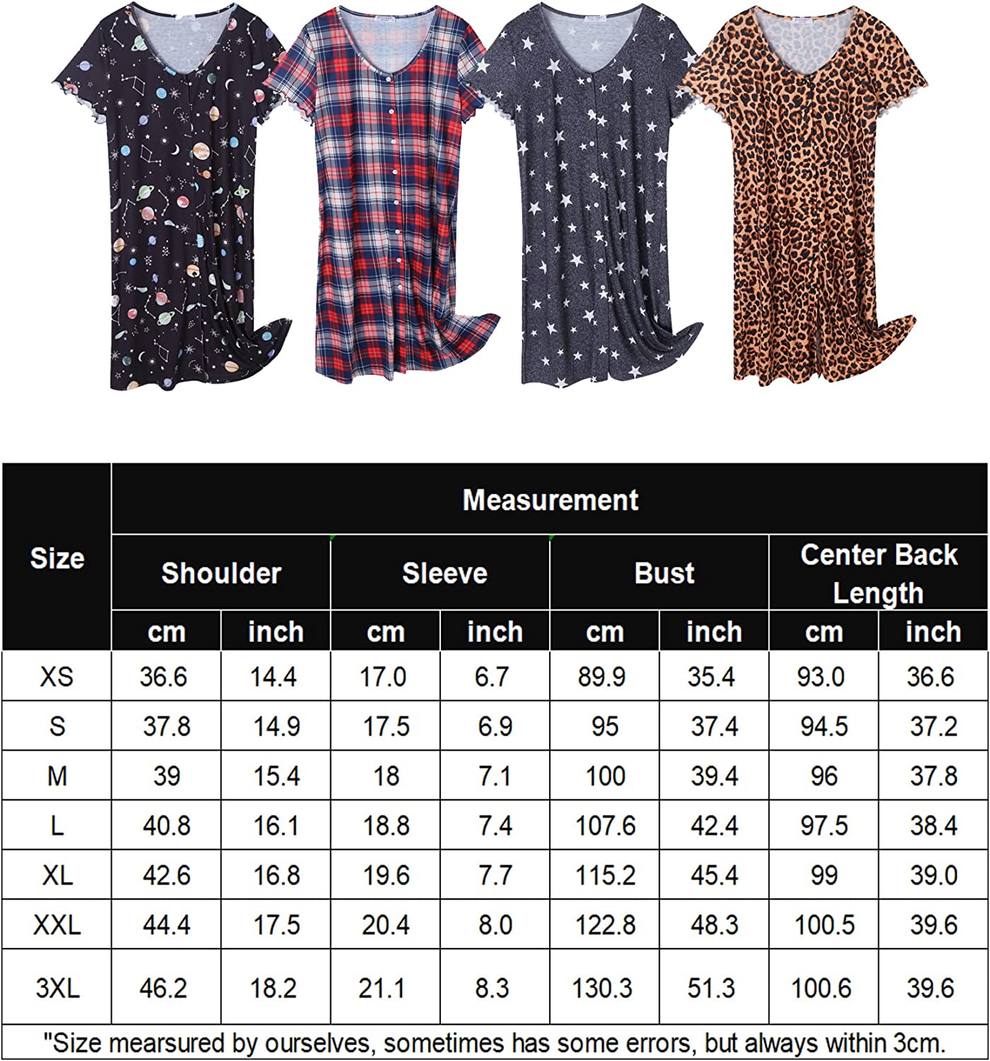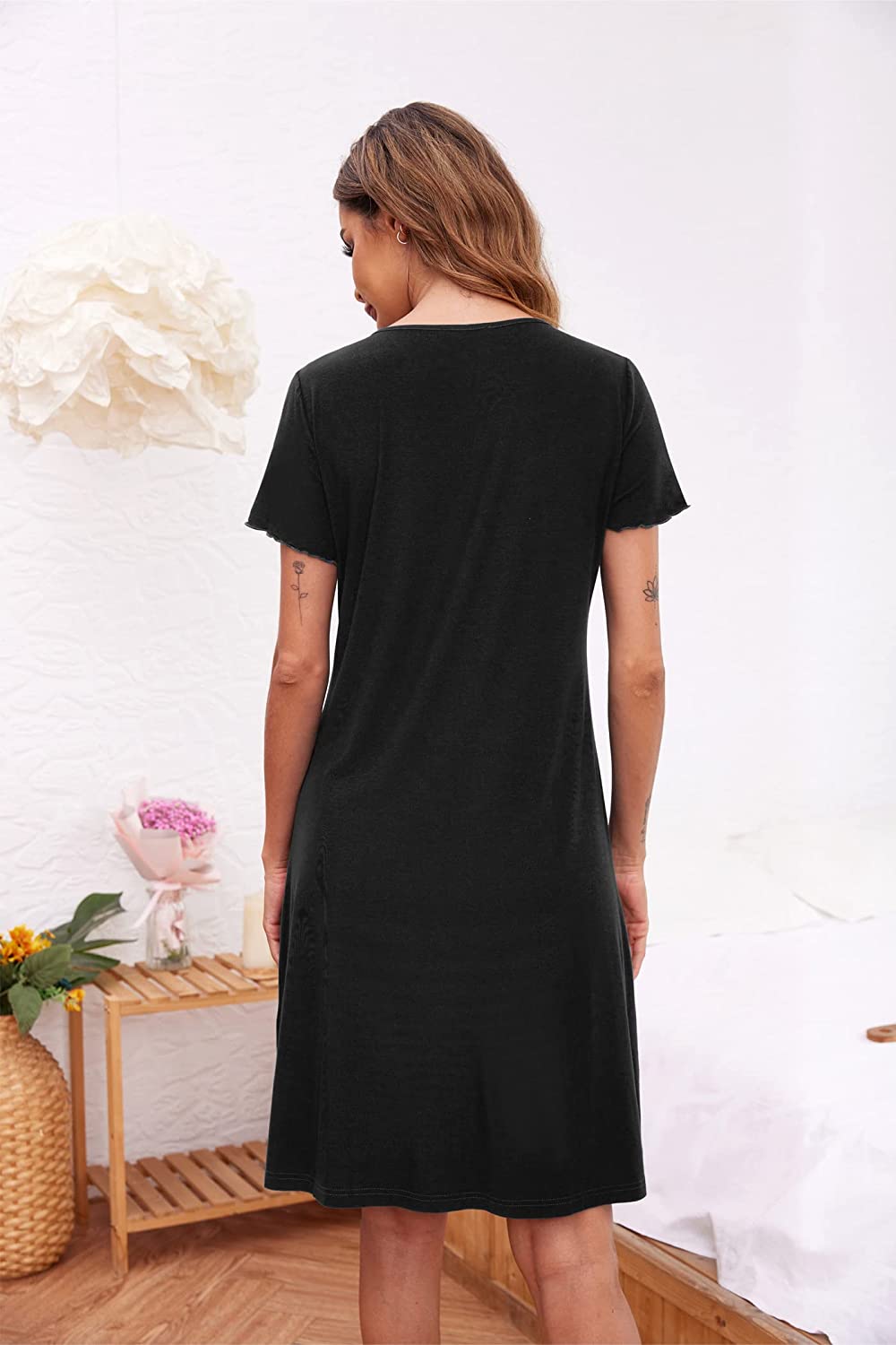 Short sleeve & knee length pajama dress, feeling much freedom while you are walking.It is a great choice to wear this night shirt while watching TV with your family or your friend.