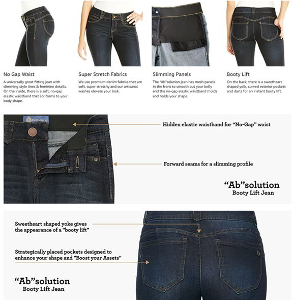 - Pockets a strategically placed for a figure flattering shape and a sweetheart back yoke to "boost your assets"
