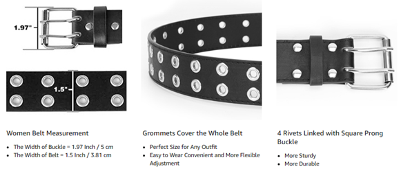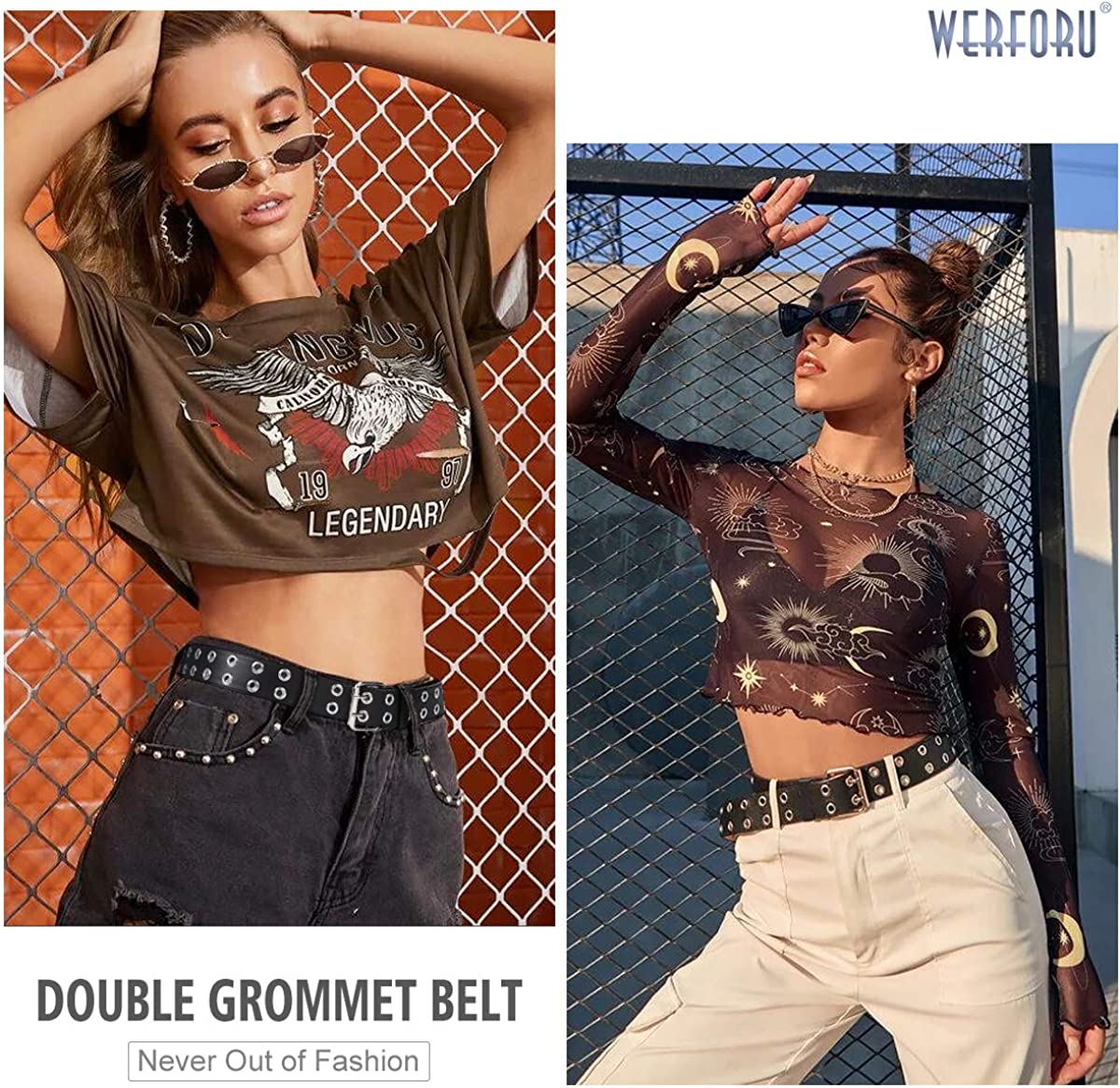 • ?Perfect Women Belts for Any Occasions: The double grommet belt is perfect for any jeans,pants,dresses with 2 rows of grommets, rather punk rock & cute look for men or women. The studded design is suitable for both daily use and costume parties, a great gift women belt for Halloween,Christmas,Mother’s day, cosplay and other activity.