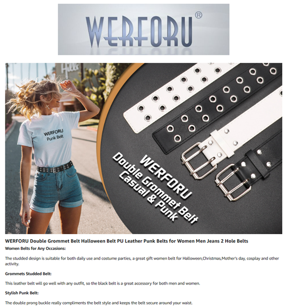 WERFORU Double Grommet Belt PU Leather Punk Belt for Women Men Jeans 2 Hole Belts 1.5 Wide