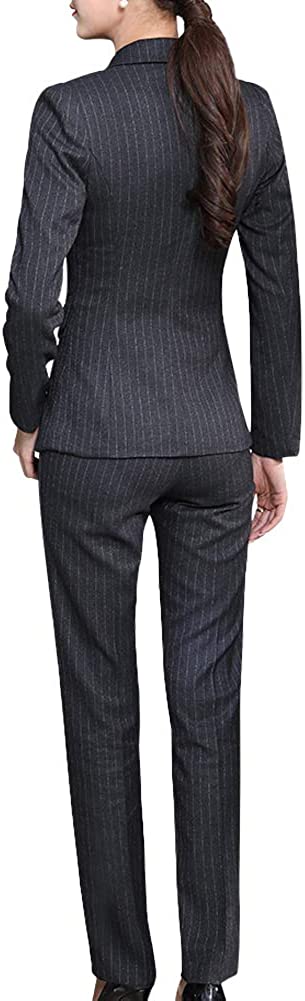 • 【Top】-Fashion notched lapel,and thick shoulder pads.Exquisite and stick double closure fasten the suit.Practical front pockets with covered placket.Simple long sleeve cuffs design,unique strip pattern design,waisted,regular and neat blazer hem,single-breasted button vest.