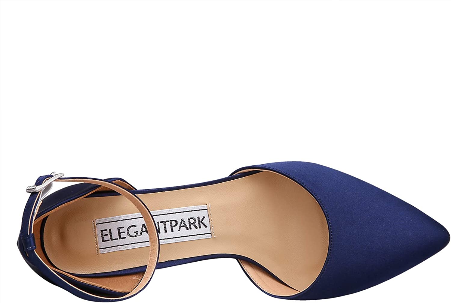 ELEGANTPARK Women Pointed Toe High Heel Pumps Satin Ankle Strap Wedding Bridal Evening Party Dress Shoes