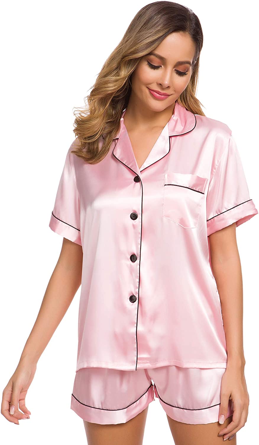 Occasion:Women's Short Sleeve Silk Satin Pajamas Set, which is suitable for daily wearing and easy to match.Comfortable and suitable for lounging and sleeping,pajama party,girls day,bridal sleepwear,indoor, living room, bedroom, hotel, vocation, travel, and daily sleepwear.