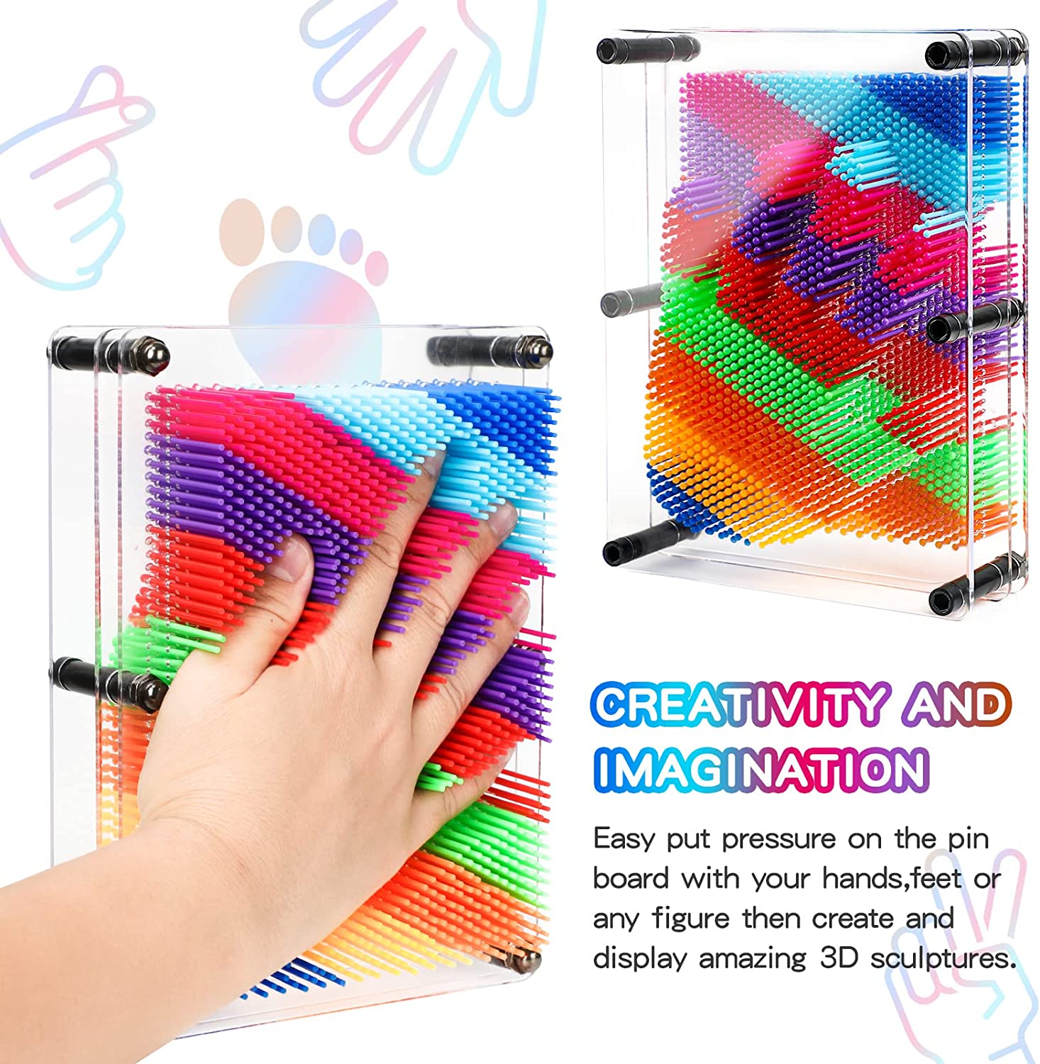 【HOT 3D PIN ART TOY】Hand pin toy will bring more happy pastime at home or school playtime. Pin sensory toy is perfect for kids to play with their friend and family members. So this Pin toy impression is nice birthday gifts, christmas gifts, graduation gifts, thanksgiving gifts and etc for family and friends.