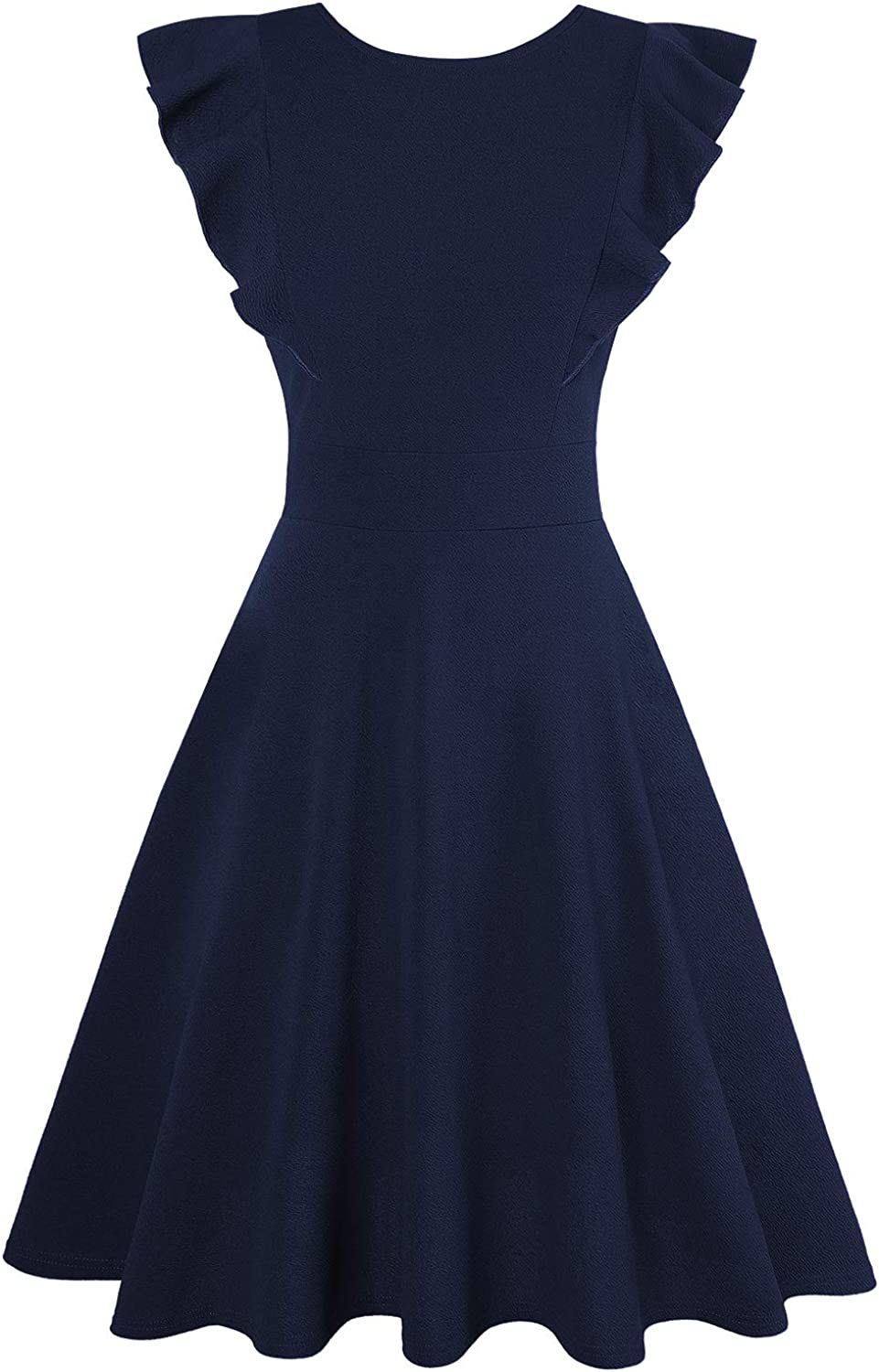 FLATTERING RUFFLE SLEEVES : The sexy flutter sleeves add some pizzazz and not tight around your arms. Plus there is extra fabric that covers the space between your arm and the ruffle, this makes the dress very classy.¡¾WARM TIPS¡¿This size of vintage dress is smaller, to ensure your experience, pls order one size up.Thank you!