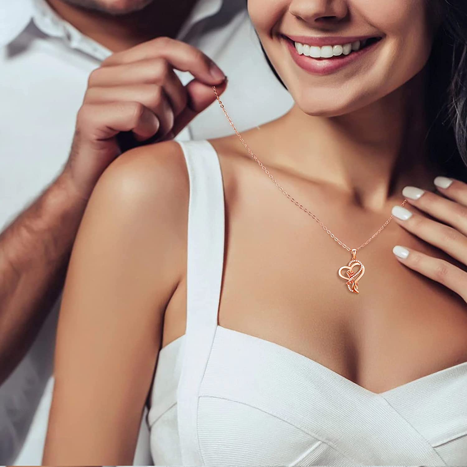 ?COMFORTABLE WEAR?Sterling Silver with Smooth Polished Surface,Embellished with Sparkly Cubic Zirconia,Comfortable to Wear. Heart Rose love Neclesses Birthday Mothers Day Xmas Jewelry Present for Her Girlfriend Wife Mom Daughter