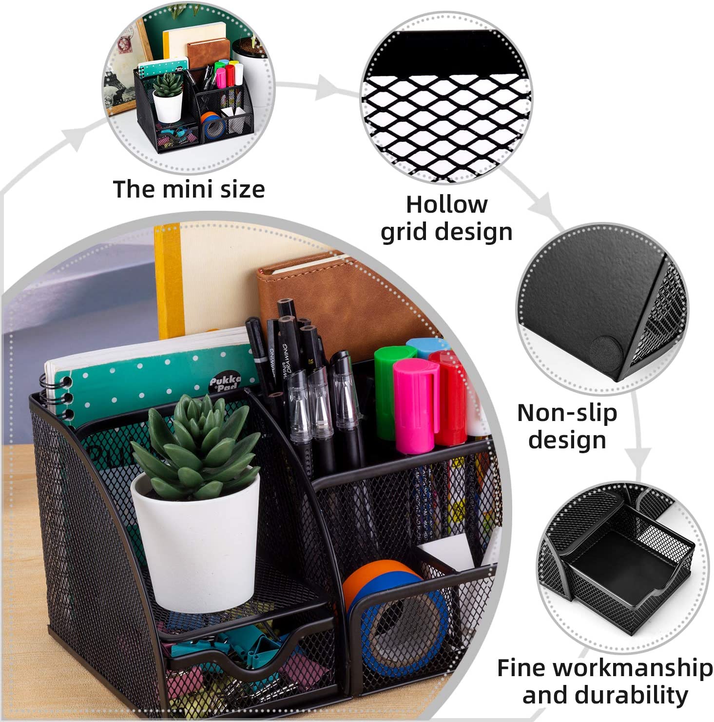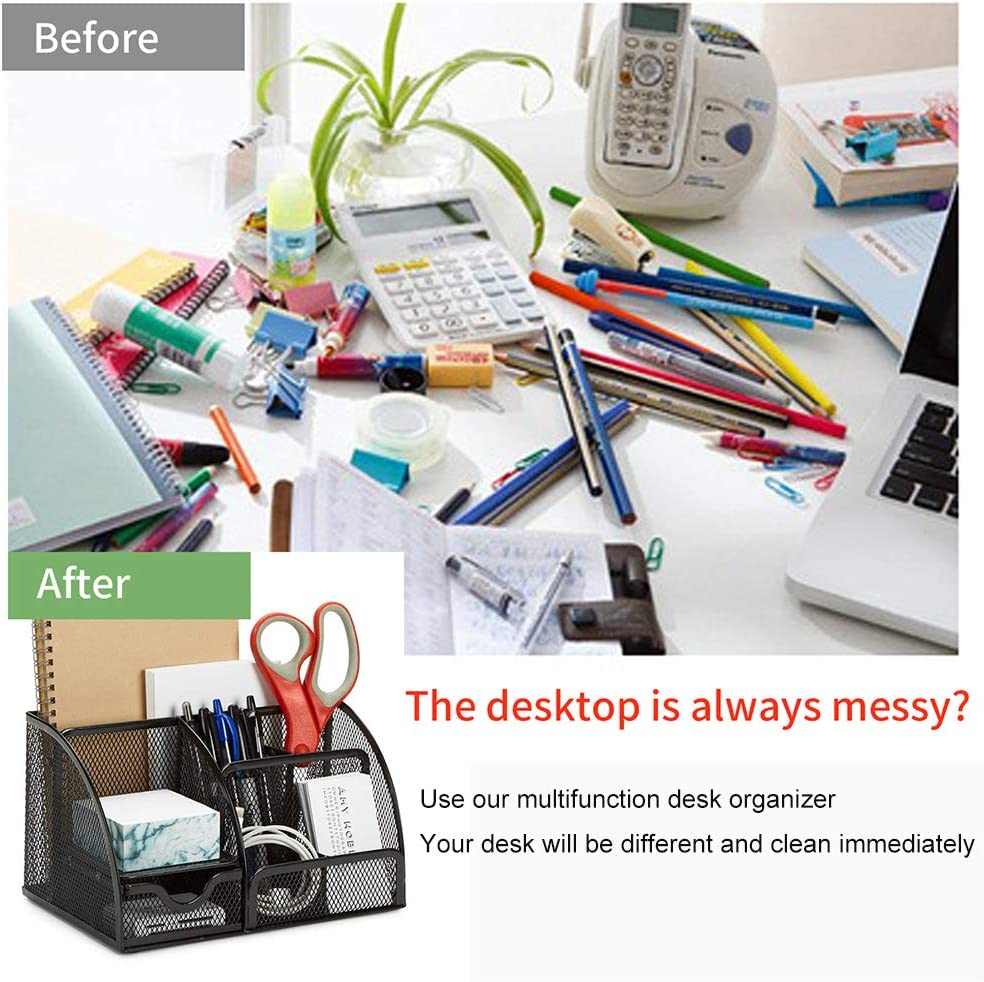 【Office Desk Organizers and Accessories】 Durable Sturdy Stylish Material: The desk organizer is made of quality mesh metal - durable, compact and smart-looking and will keep the stuff you need at hand while staying out of your way.