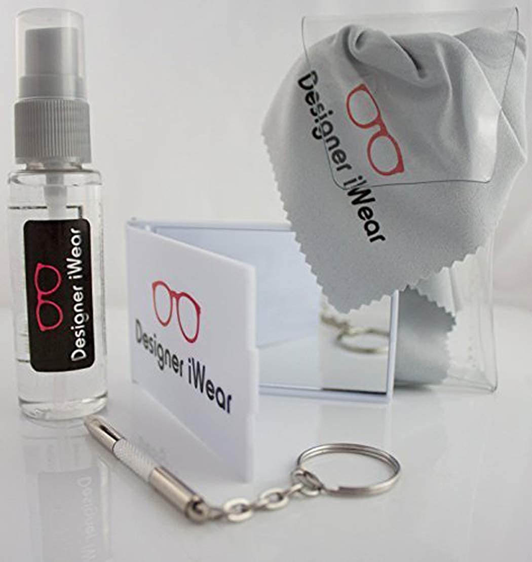 ?GREAT VALUE- FREE CLEANING KIT. Includes: a Designer iWear 1 ounce spray bottle, mirror, screw driver/key chain, and a folded microfiber cloth.