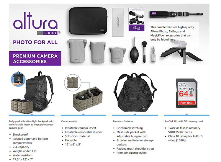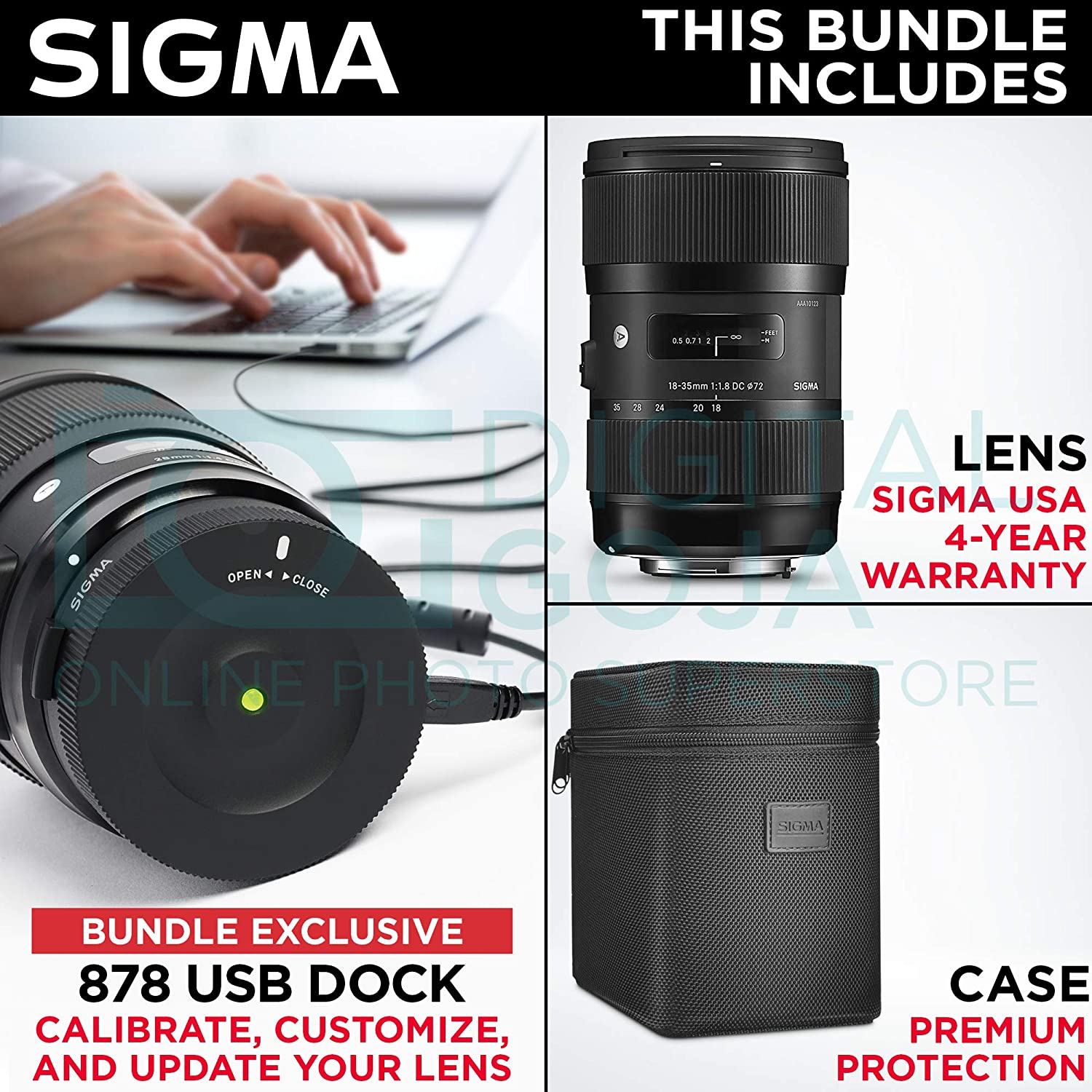 - INCLUDES: Sigma 18-35mm F1.8 Art DC HSM Lens + Sigma USB Dock + AirBag Packable Bag and Camera Insert + SanDisk 64GB C10 Ultra UHS-I SDXC Memory Card + Altura Photo Mini Tripod with Pistol Grip + Altura Photo Rapid Fire Wrist Strap + Altura Photo Hard-Shell Case + Altura Photo Cleaning Kit + 3 Sizes MagicFiber Microfiber Lens Pouch