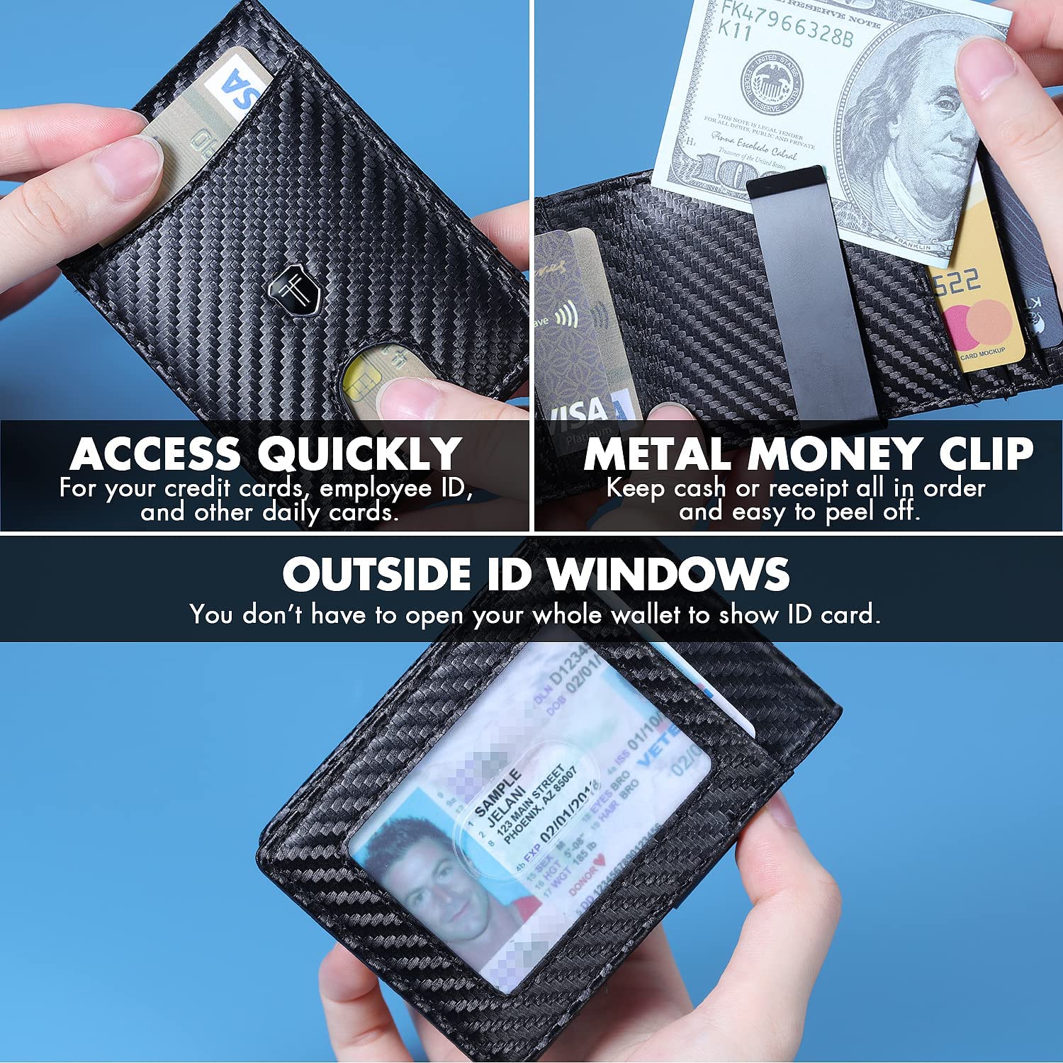 ULTRA SLIM & MULTIFUNCTIONAL - Best slim wallet that measures only 3.9"x2.76"x0.34". A men’s wallet with enough room for essential cards and cash without being bulky. Front pocket for the most used cards for quick access. Outside pocket for ID cards so you don’t have to open the whole wallet