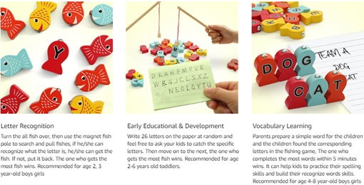 - Creative Way to Learn: The Magnetic Wooden Fishing Game is a great teaching tool to develop your kids hand and eye-coordination as well as their motor skills. Alphabet Fish Games challenging enough to keep kids entertained, yet easy enough to promote confidence.