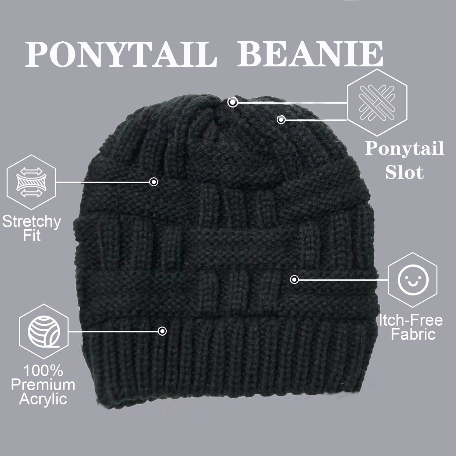One size fit all: This Ponytail beanie are 100% arlics . Lightweight, super soft and warm. Exceptional quality.No matter the head size or crazy hairdo,this hat with poytail hole hat will stretch to fit you.You can even cover your ears. It'll snuggle your head like receiving a big hug.