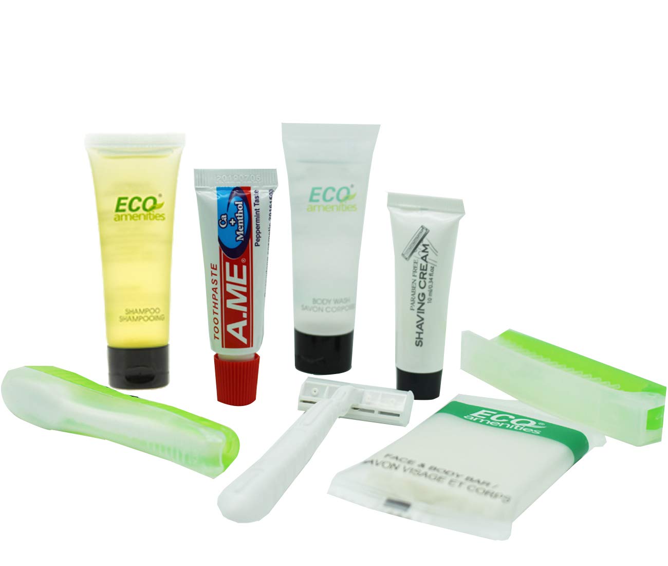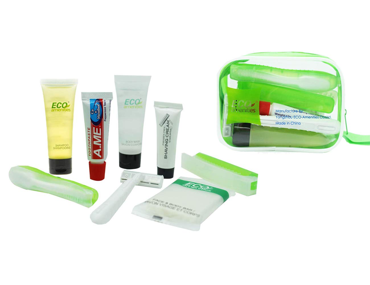 MUST ITEM FOR HOSPITALITY AND TRAVEL USE: Sold in bulk; 6-piece travel essential toiletries in a small and tidy transparent bag to ensure hygiene. Ideal items for the Hotel, Motel, Airbnb, Short term vacation rentals, Inns, Gyms, Resorts, Bed & Breakfasts, Airlines, Holiday gifts, Business trip, Busy college students and so on.