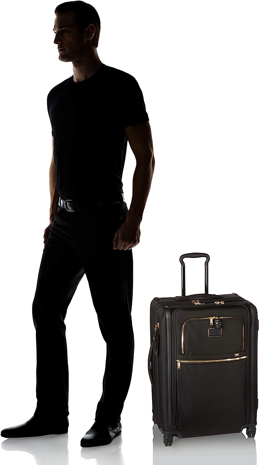 TUMI - Alpha 3 Short Trip Expandable 4 Wheeled Packing Case Suitcase - Rolling Luggage for Men and Women - Black/Gold