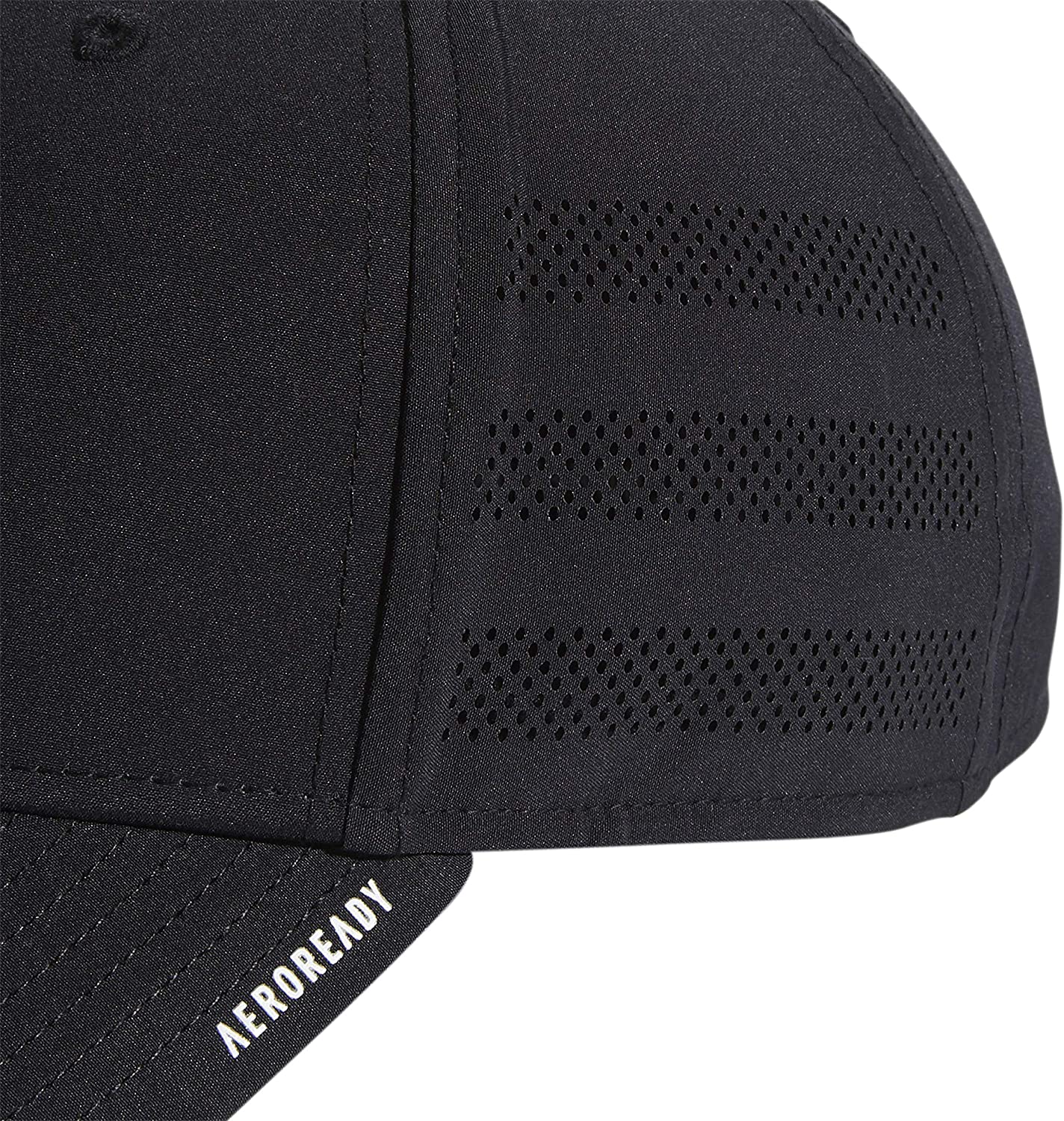 This sporty cap keeps you covered and comfortable on the sidelines or during practice. it's made of smooth fabric that stretches to fit. the cap dries quickly and has perforated 3-stripes on the sides for ventilation.