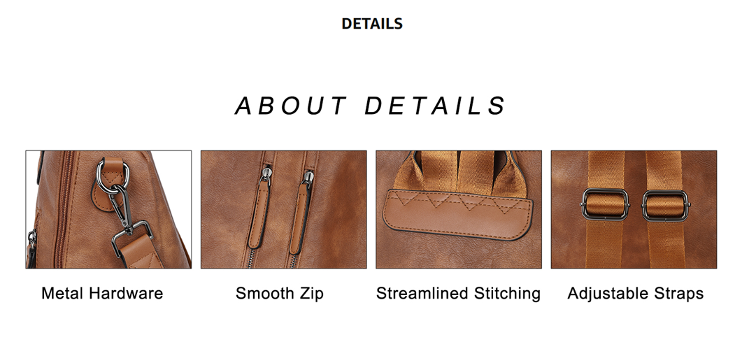 [HIGH-END MATERIAL]: Warm Tip: The long shoulder strap is made of canvas and put on the interior zipper pocket of the backpack, please check it when you receive. Made of PU leather with metal hardware, heavy duty zips and fabric lining, which is fashionable and durable.