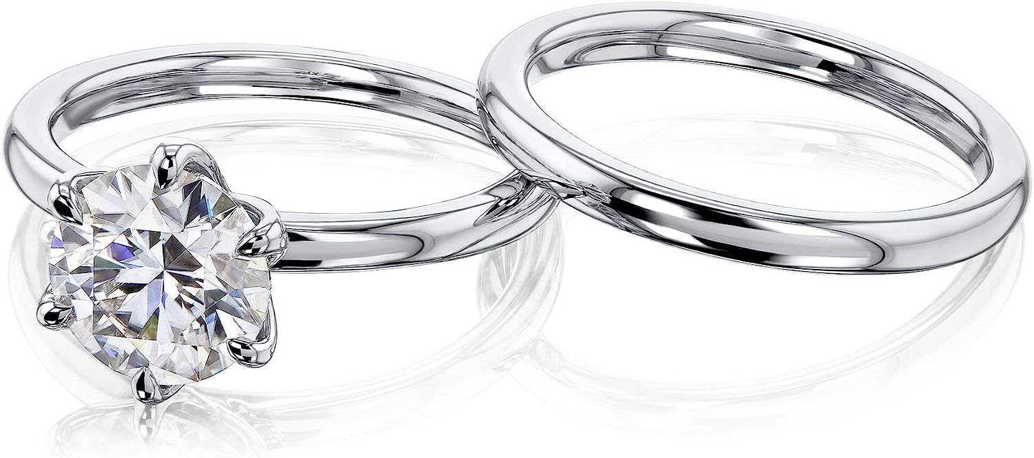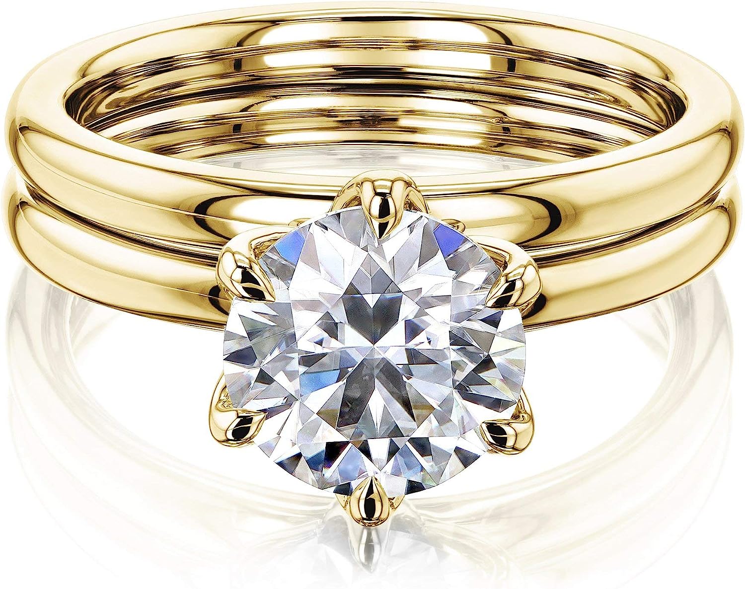 Women's Comfort Fit Solid 14k Gold Rings. Set of two - one engagement ring and one matching band.
