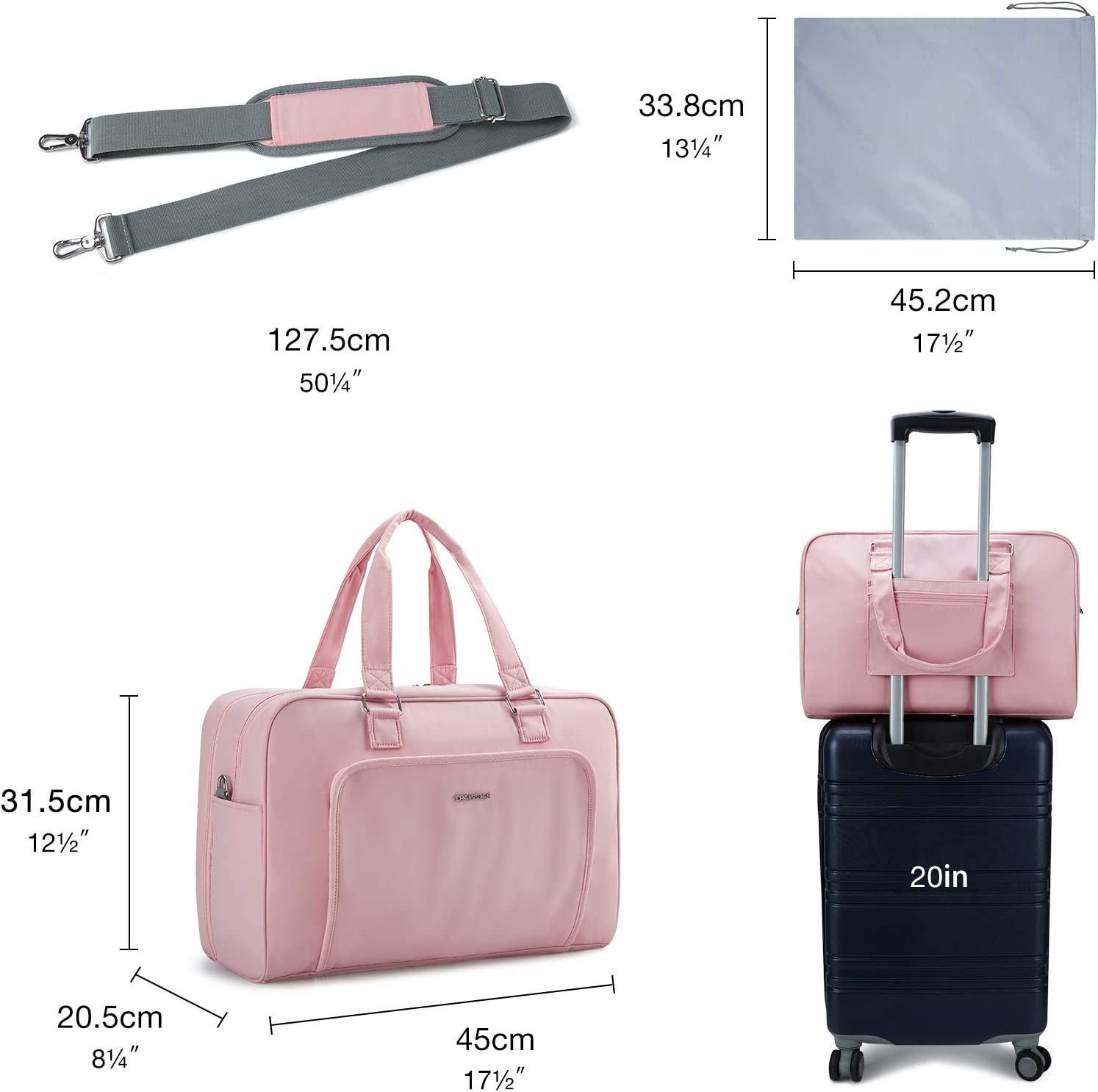 Weekender Bags for Women, BAGSMART Travel Duffle Overnight Bag Personal Item Bag with Shoe Bag for Travel Essentials (Pink, 27L)