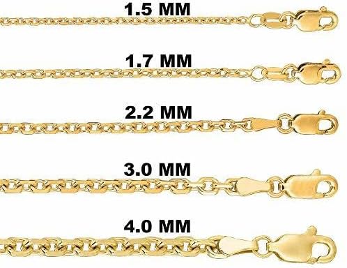 14k SOLID Yellow Gold 0.8MM-4.00MM Thick Shiny Diamond Cut Cable Link Chain Necklace for Pendants Charms with Lobster-Claw Clasp, REAL Gold Women’s Men's Jewelry (13" 16" 17" 18" 20" 22" 24" 30” inch)