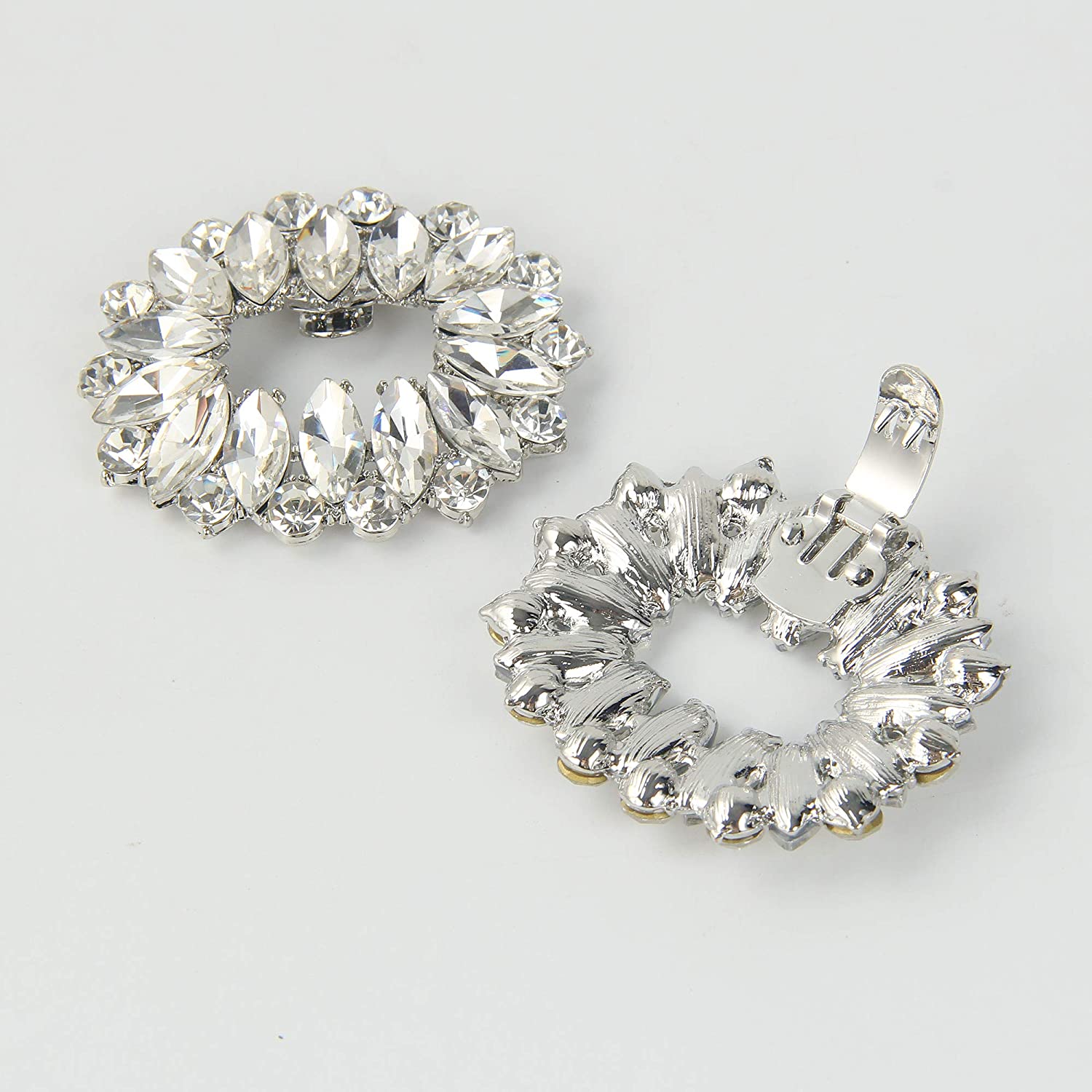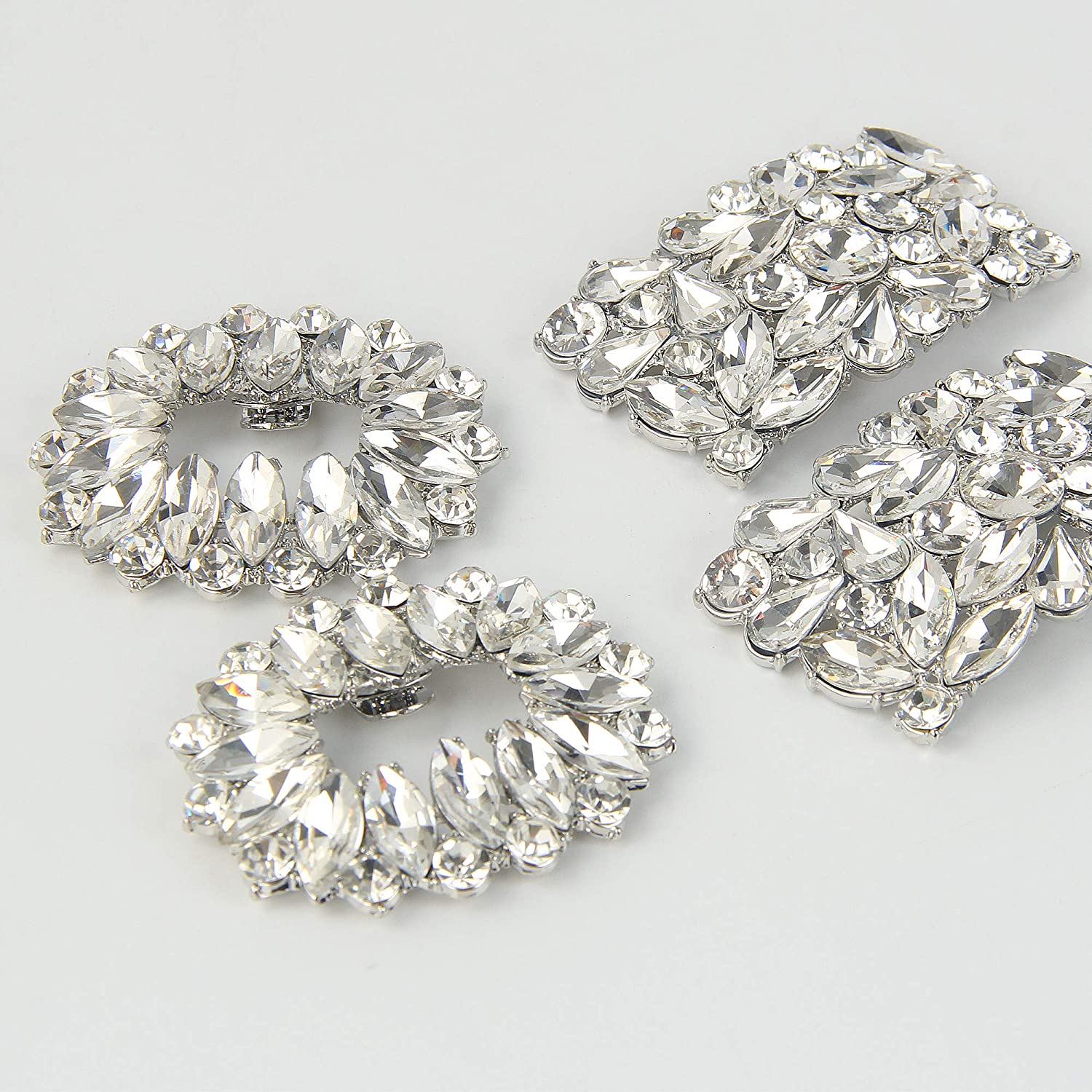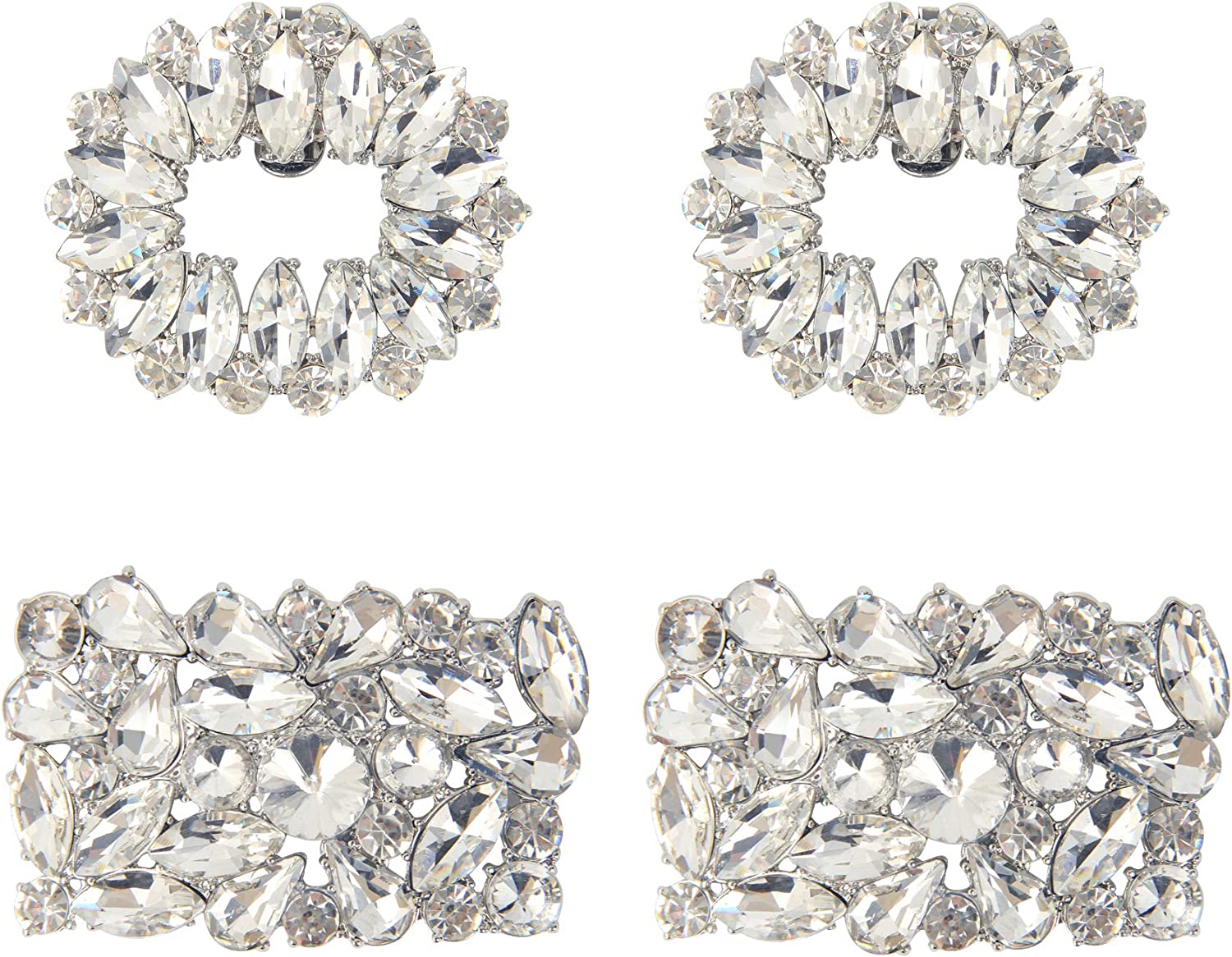 kilofly 2 Pairs Elegant Rhinestone Crystal Metal Shoe Clips Wedding Party Set