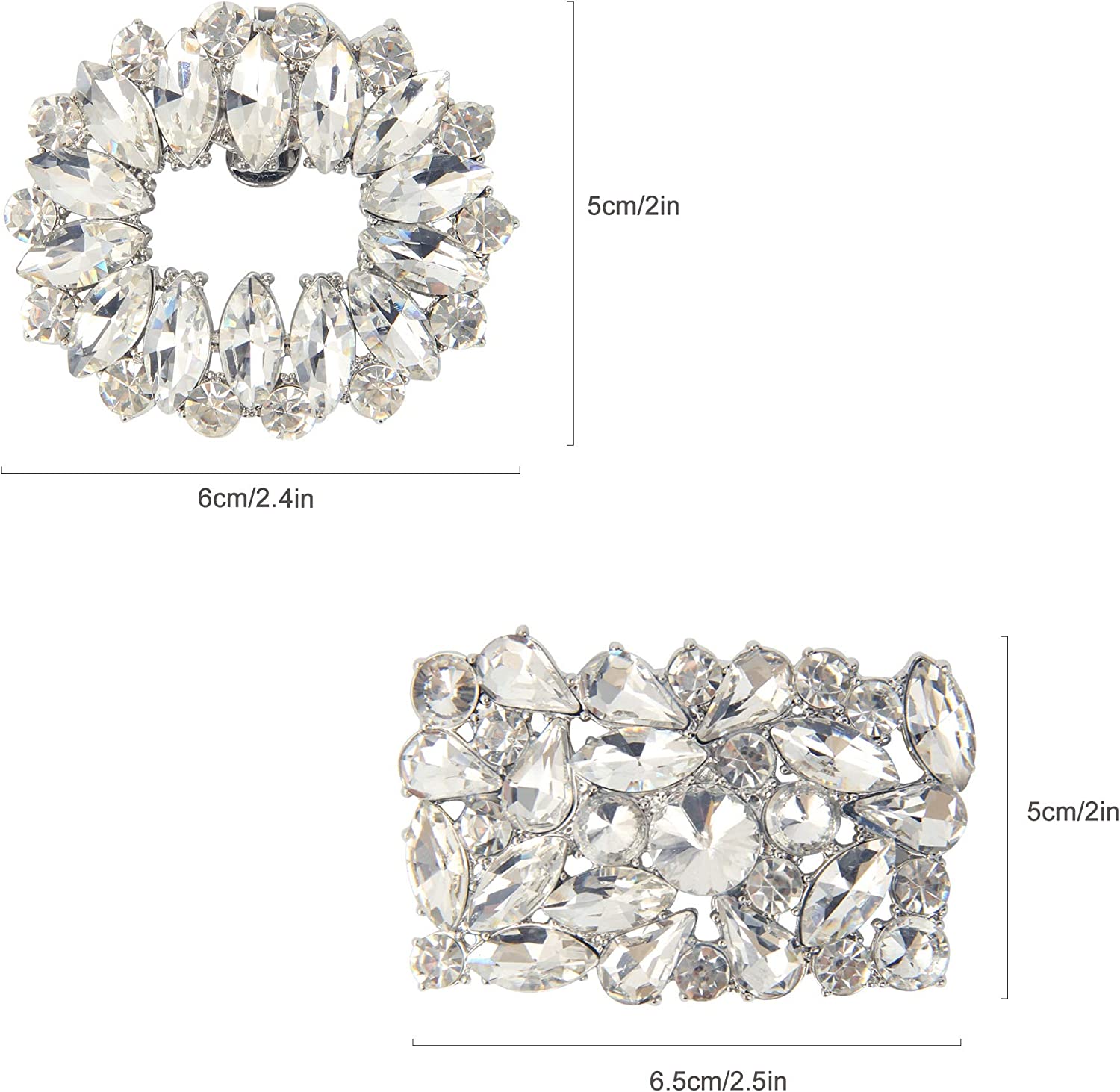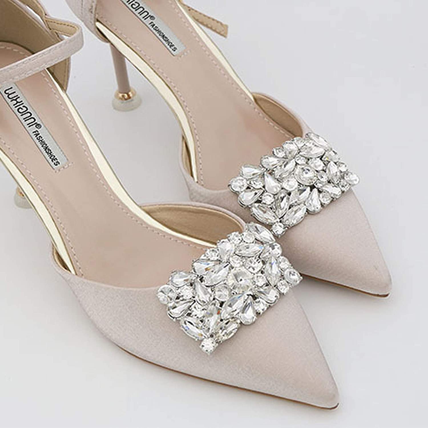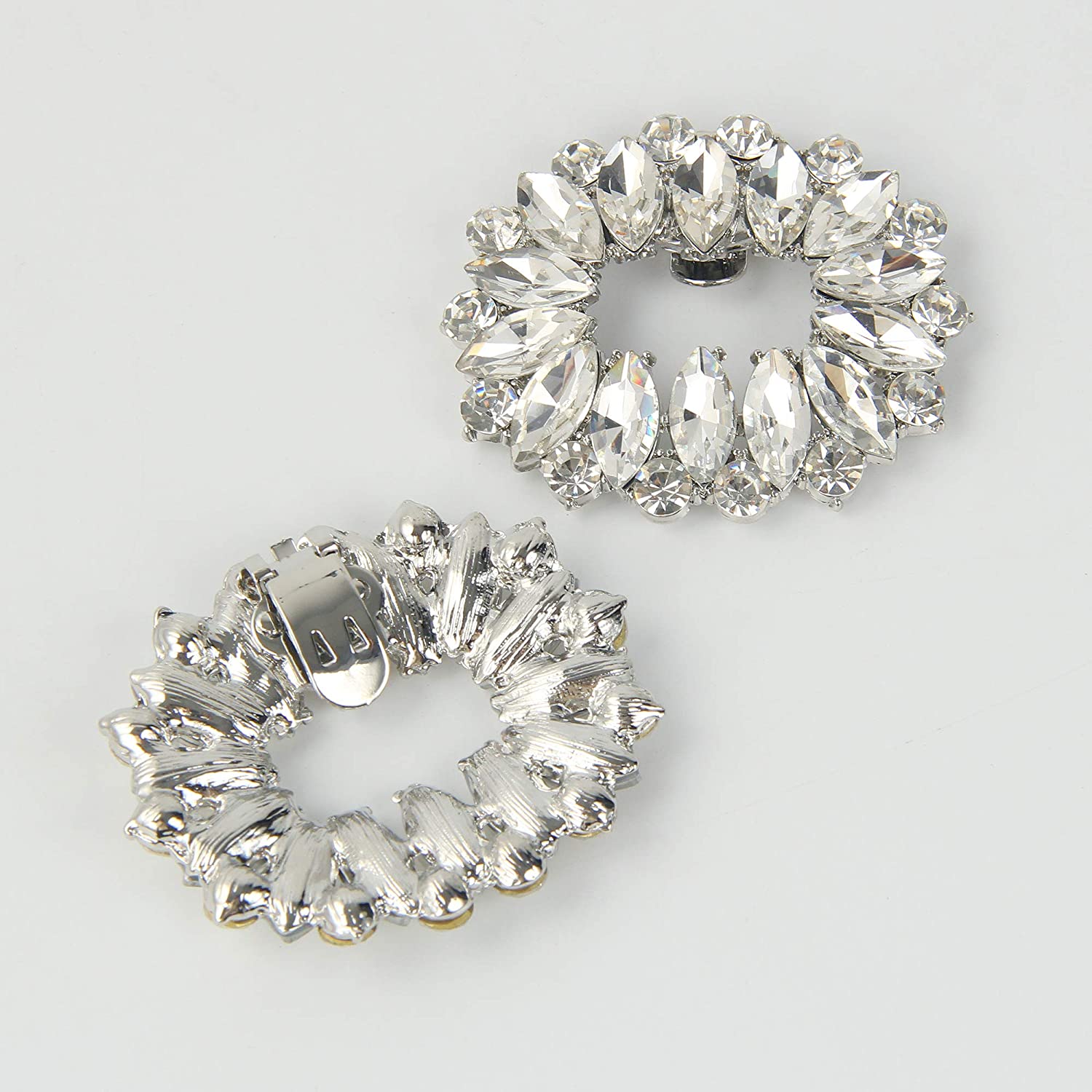 kilofly 2 Pairs Elegant Rhinestone Crystal Metal Shoe Clips Wedding Party Set