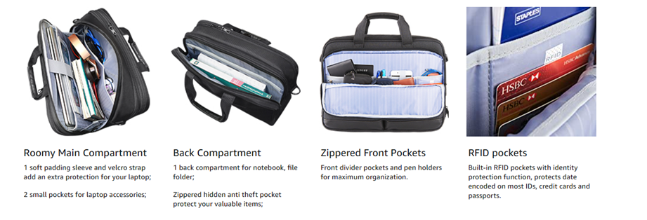 - MULTI-FUNCTIONAL COMPARTMENT: Roomy compartments provide separated space for your 17.3” computer, iPad, files, pens, wallet, notebooks and all your items. RFID pockets with identity protection function, protects date encoded on most IDs, credit cards and passports. Padded laptop compartment offers perfect protection for your laptop from accidental bumps and shocks.