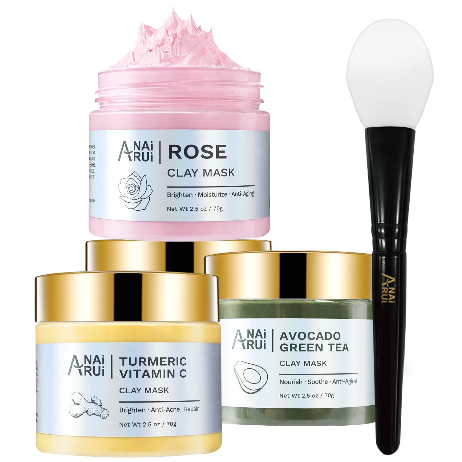 ANAI RUI SPA FACIAL MASK --Facial therapy for all skin types. Turmeric clay mask, green tea clay mask, and dead sea mud mask 3 in one set, all content niacinamide, and hyaluronic acid, deep cleansing while intensely hydrates, restore soft, clean, refreshed, and nourished skin look after use. Perfect for mud spa facial care 3 times per week.