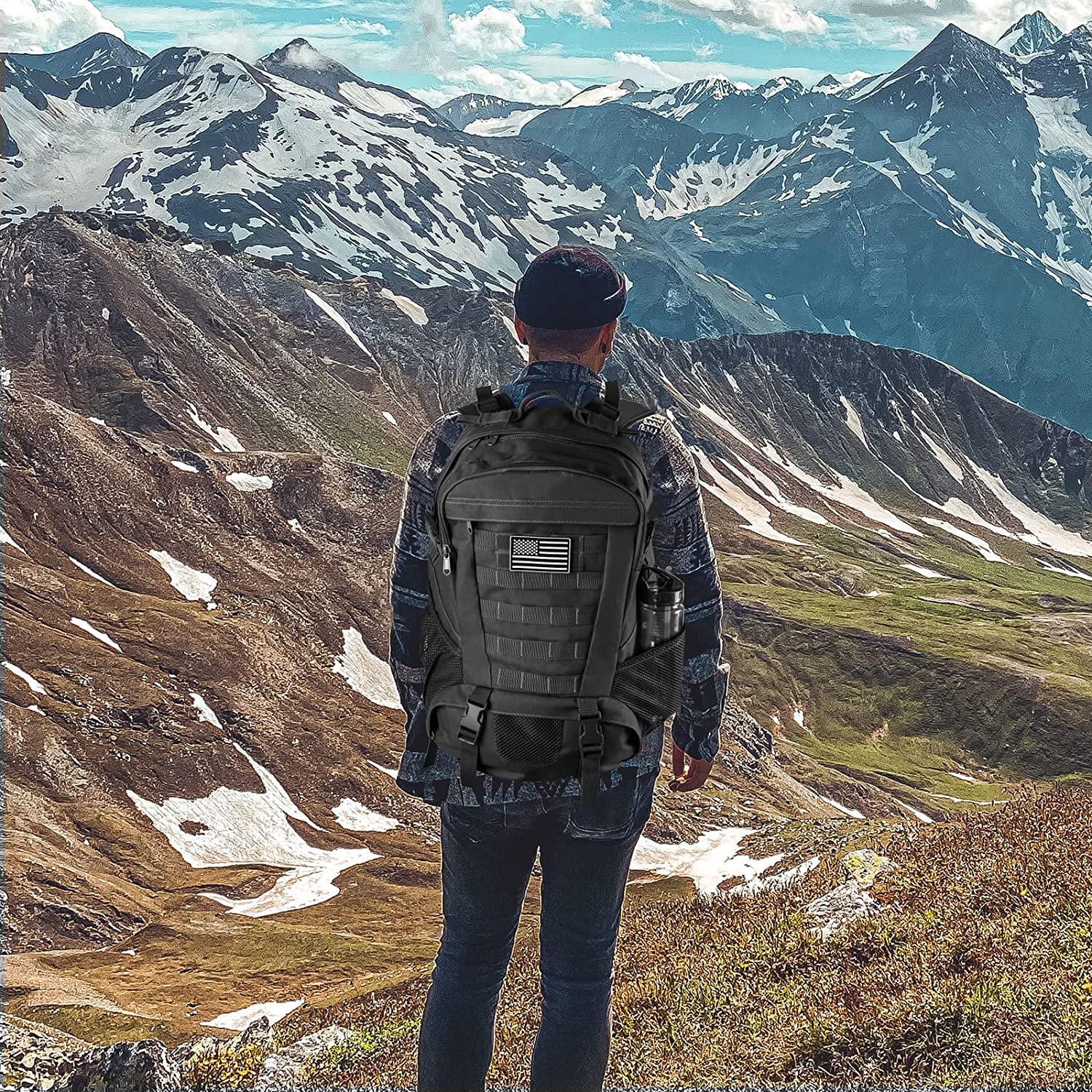 - ✅ MOLLE DESIGN & FOAMED PROTECTED: Molle system design provides portability for you to combine with knives, pockets, hooks or other small gadgets. This molle hiking daypack comes with a USA Flag Patch stick on the front can make you stand out when in the forest. The foamed back part and padded shoulder straps make you feel comfortable even it loads a lot.